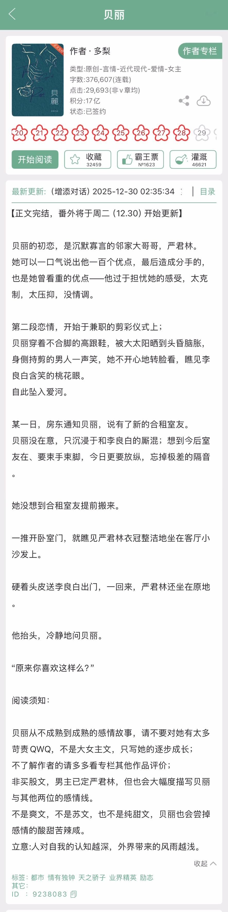 多梨的《贝丽》完结啦!现言➕破镜重圆?女主从不成熟到成熟的感情故事,看文案就挺修