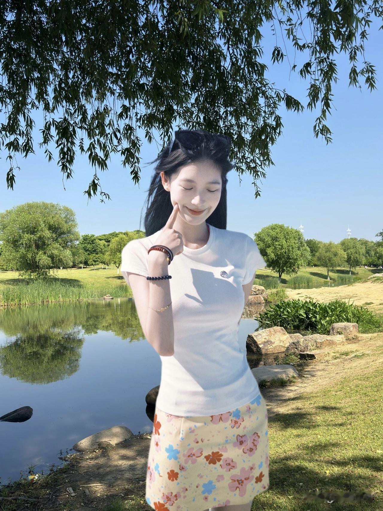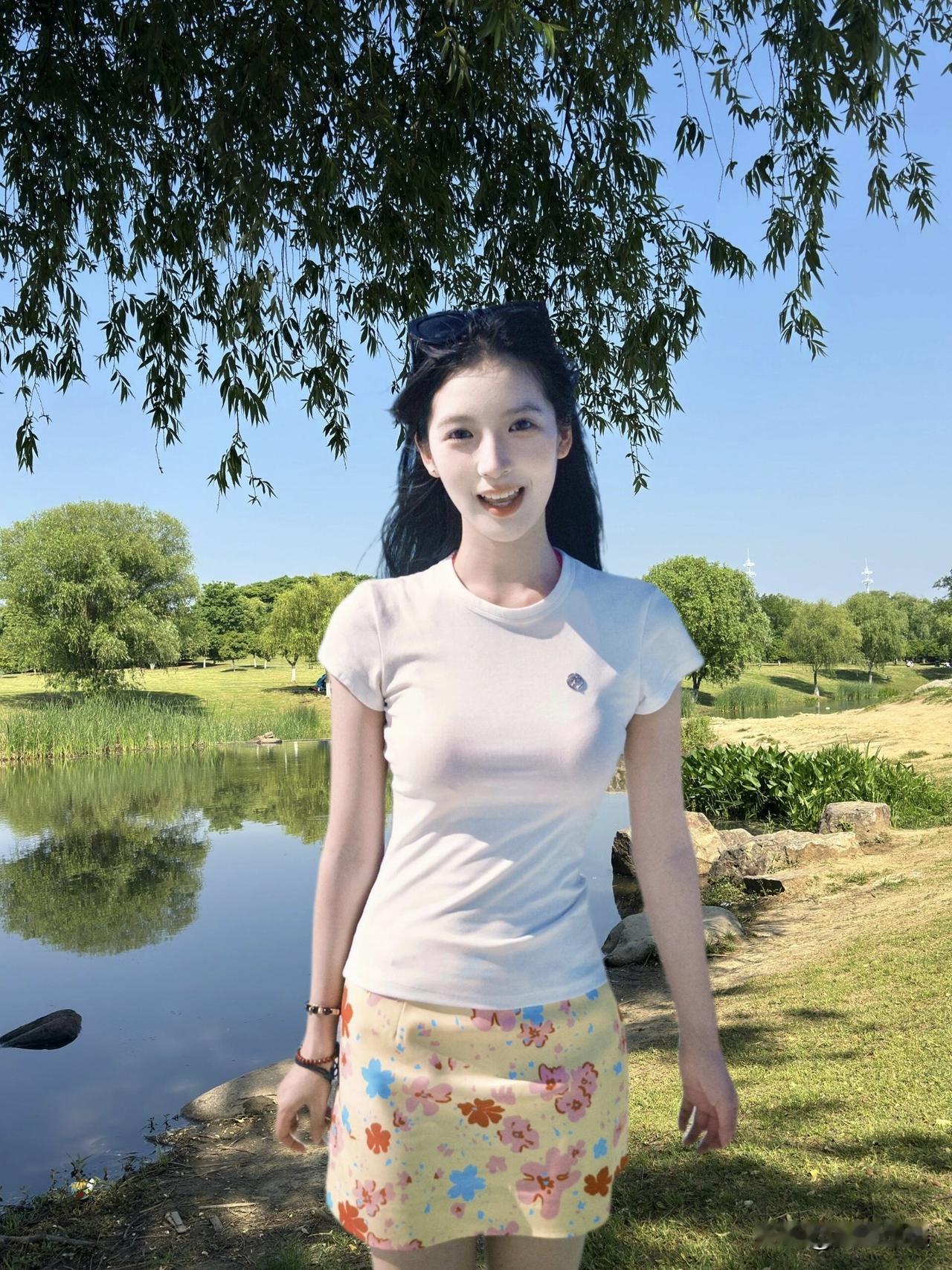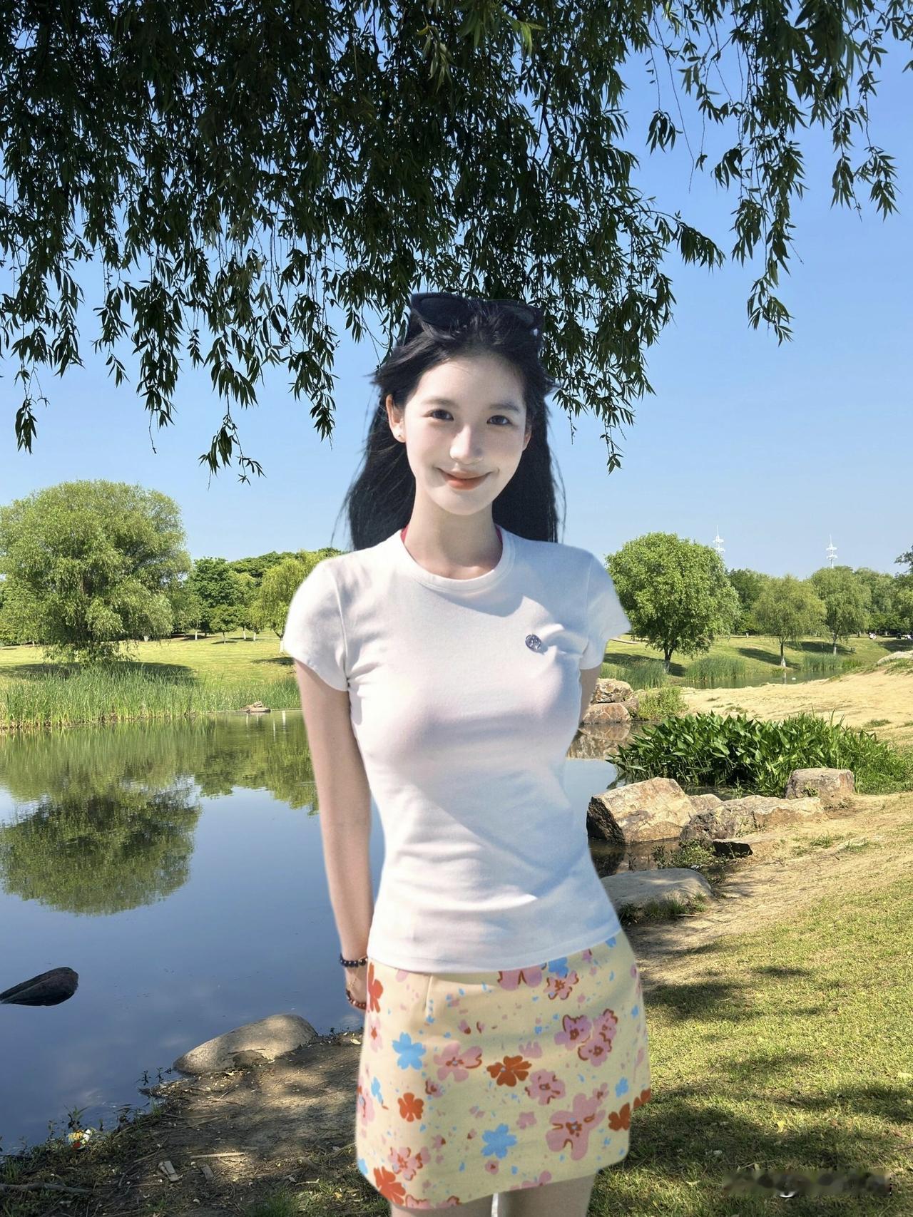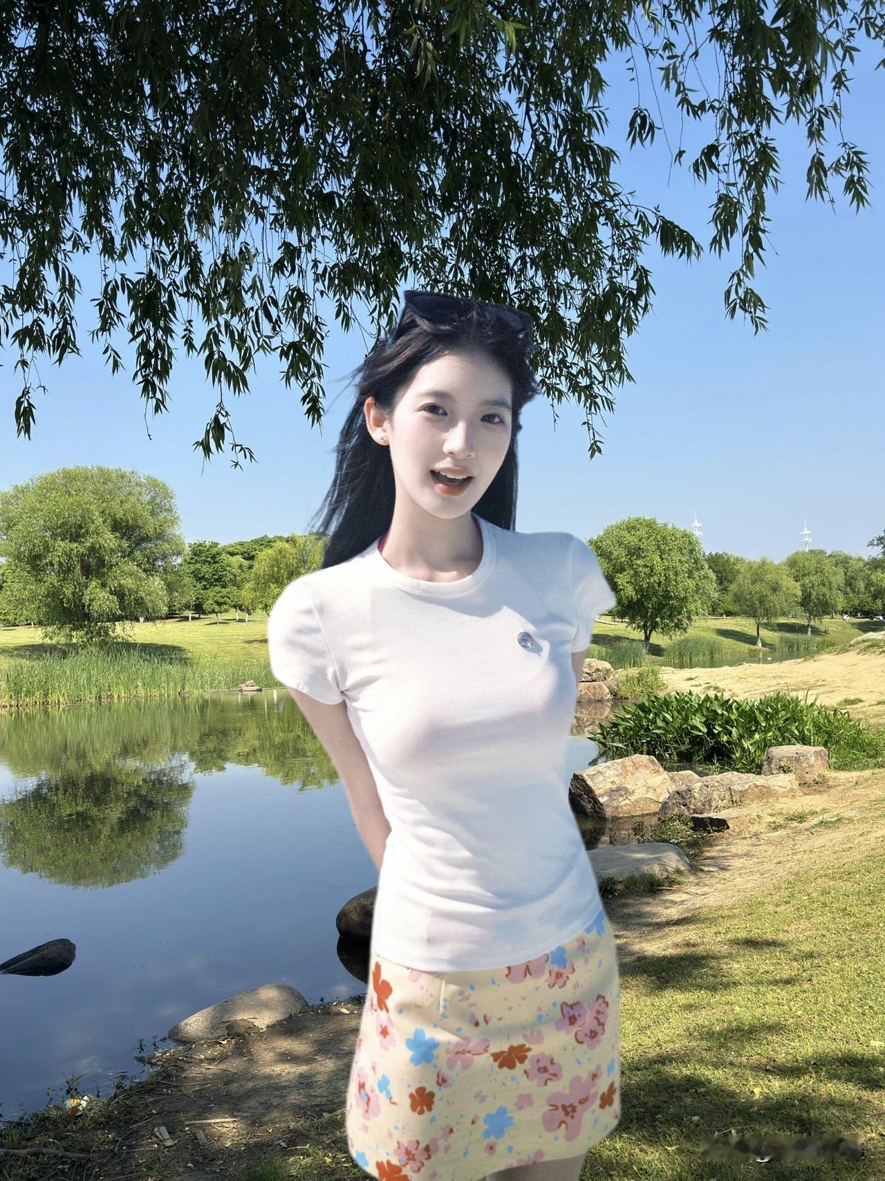 阳光明媚的公园里,元气少女与自然美景的完美融合🌞🌳👗