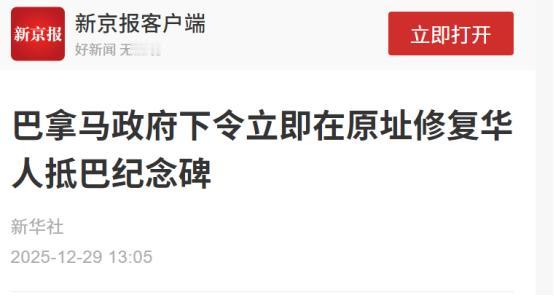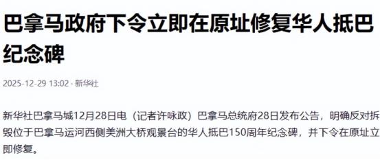 中方勃然大怒,不到24小时,巴国政府赔不是,下令立即原址修复   “这哪是拆纪念碑?分明是刨了巴拿马的历史根!”12 月 28 日清晨,巴拿马美洲大桥下的观景台一片狼藉,原本矗立在这里的中巴公园和华人抵巴 150 周年纪念碑,一夜之间变成了碎石料堆。   当地华人社团负责人攥着被尘土弄脏的照片红了眼 —— 照片里的方碑刻着中西双语铭文,背后是 171 年来华人在巴拿马淌过的血汗。   这事得从 1854 年说起。当年 3 月 30 日,705 名华工挤在 “海巫号” 帆船上,飘了 60 多天抵达巴拿马,一上岸就扛起锄头修两洋铁路。   后来开凿巴拿马运河时,又有近万名华工埋骨地峡,有人甚至没留下名字,只在史料里记着 “死于疟疾或塌方”。   靠着这份拼劲,华人在巴拿马扎下根:如今 340 万巴拿马人中,6% 是华人血统,35% 的国民家谱里能找到中国印记,连巴拿马国家电视台都拍了纪录片《中式早餐》,讲华人美食如何融入当地生活。   2004 年是个特别的年份。这年巴拿马国会干脆把 3 月 30 日定为 “华人日”,还支持华人社团在运河边建了中巴公园和纪念碑。   那座十米高的方碑成了地标,站在碑前能看见运河里的货轮穿梭,美洲大桥上车流不息,当地人都知道 “这是纪念帮我们建国家的中国人”。   谁也没想到,21 年后的 12 月 27 日深夜,阿赖汉市政府的推土机趁着夜色摸了过来,既没通知华人社团,也没跟中央政府打招呼,闷头就把碑推了。   “前一天还好好的,凌晨就听见轰隆隆的声音。” 摆摊 20 多年的加德洛说,他想上前阻拦,却被保安拦住。   更让华人寒心的是,从 2024 年 6 月起,他们就多次找市政府沟通护碑,今年 3 月甚至主动提出愿意出钱修缮,可每次都石沉大海,中国驻巴使馆也表达过帮忙的善意,照样被无视。等到推土机开过来时,连句解释都没有。   阿赖汉市政府事后嘴硬说 “有结构性安全风险”,这话谁信?巴拿马总统穆利诺当天就在社交媒体上骂街:“这是野蛮行径!没有任何正当理由,不可原谅!”   中央政府比总统更急,公共工程部、运河事务部全出来表态,说这是地方政府的 “私自作乱”,还特意强调 “华人是国家建设不可分割的一部分”。   中方的反应更是快得不含糊。12 月 29 日,中国驻巴拿马大使馆的严正声明直接把话说透:“这不仅践踏 30 万华侨的感情,更伤害中巴友谊!”   使馆细数前因后果,戳穿了地方政府 “没沟通” 的谎言,要求彻查追责、原址修复。当天下午,外交部发言人林剑在记者会上撂下硬话:“严重不满!已提出严正交涉,必须纠正错误!”   这股怒火显然烧到了巴拿马中央政府的心上。从 27 日深夜拆碑到 28 日总统府发公告,不到 24 小时,巴拿马就来了个 180 度大转弯。   穆利诺下令 “立即在原址修复”,还要求文化部和华人社团全程盯着,生怕再出岔子。外交部紧跟着道歉,说 “华人 170 多年的贡献不能忘”,那态度诚恳得没法再诚恳。   其实明眼人都清楚,这事闹大了谁都难堪。2017 年中巴建交后,两国合作越走越近,中国是巴拿马重要的贸易伙伴,华人更是当地经济的 “压舱石”。   从杂货店到会计师事务所,从餐馆到工程队,到处都有华人的身影。阿赖汉市政府拍脑袋拆碑,简直是给两国关系添乱。还好中央政府拎得清,赶紧灭火止损。   这事里藏着个硬道理:历史不是橡皮泥,想捏就捏。那些说 “只是块石头” 的人忘了,纪念碑下埋着华工的白骨,刻着两国的交情。   巴拿马总统骂 “野蛮” 骂得对,不尊重历史的行为,本身就是对自己国家的不负责。更别说中巴友谊从来不是虚的,从建交到现在,大到运河合作,小到文化交流,靠的就是互相尊重。   现在推土机留下的碎石头还没清完,修复方案已经在和华人社团对接了。有华人说:“等碑重新立起来,要把老华工的故事刻得更清楚。”   这或许是这场风波里最暖心的事,那些曾经被忽视的贡献,终究会被记住。而阿赖汉市政府的教训也摆在这里:想靠 “偷偷摸摸拆碑” 搞事情?在中国面前行不通,在历史面前更行不通。