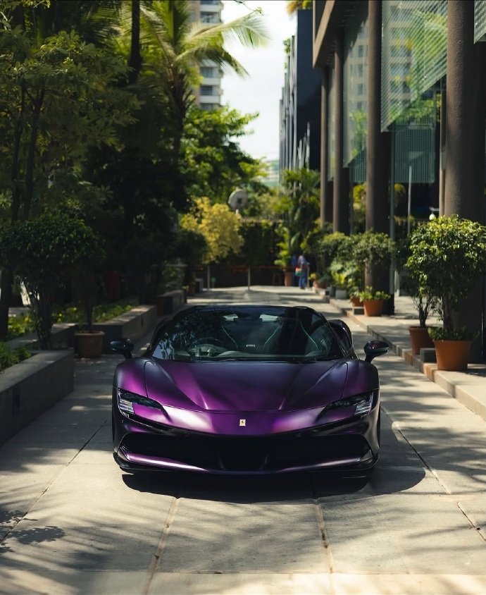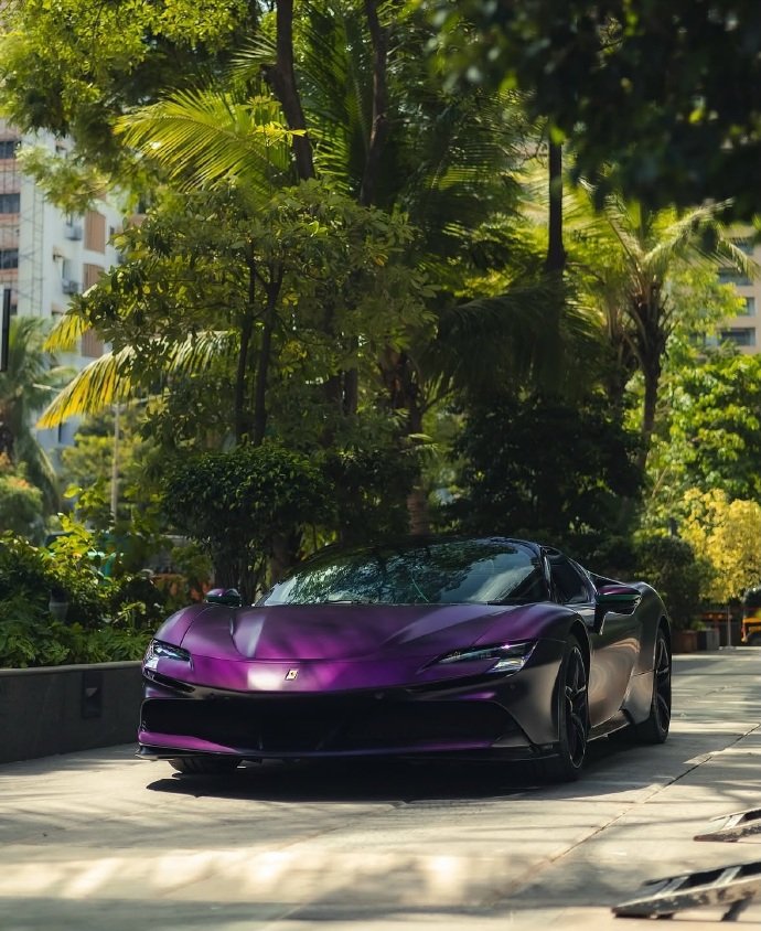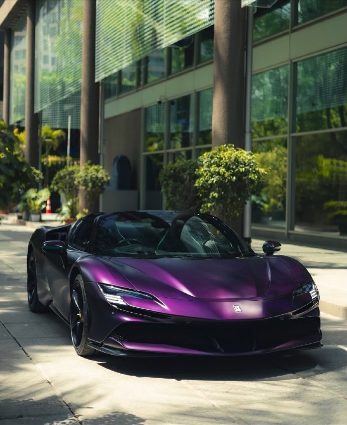 紫哑光配色,法拉利SF90Spider。全球汽车