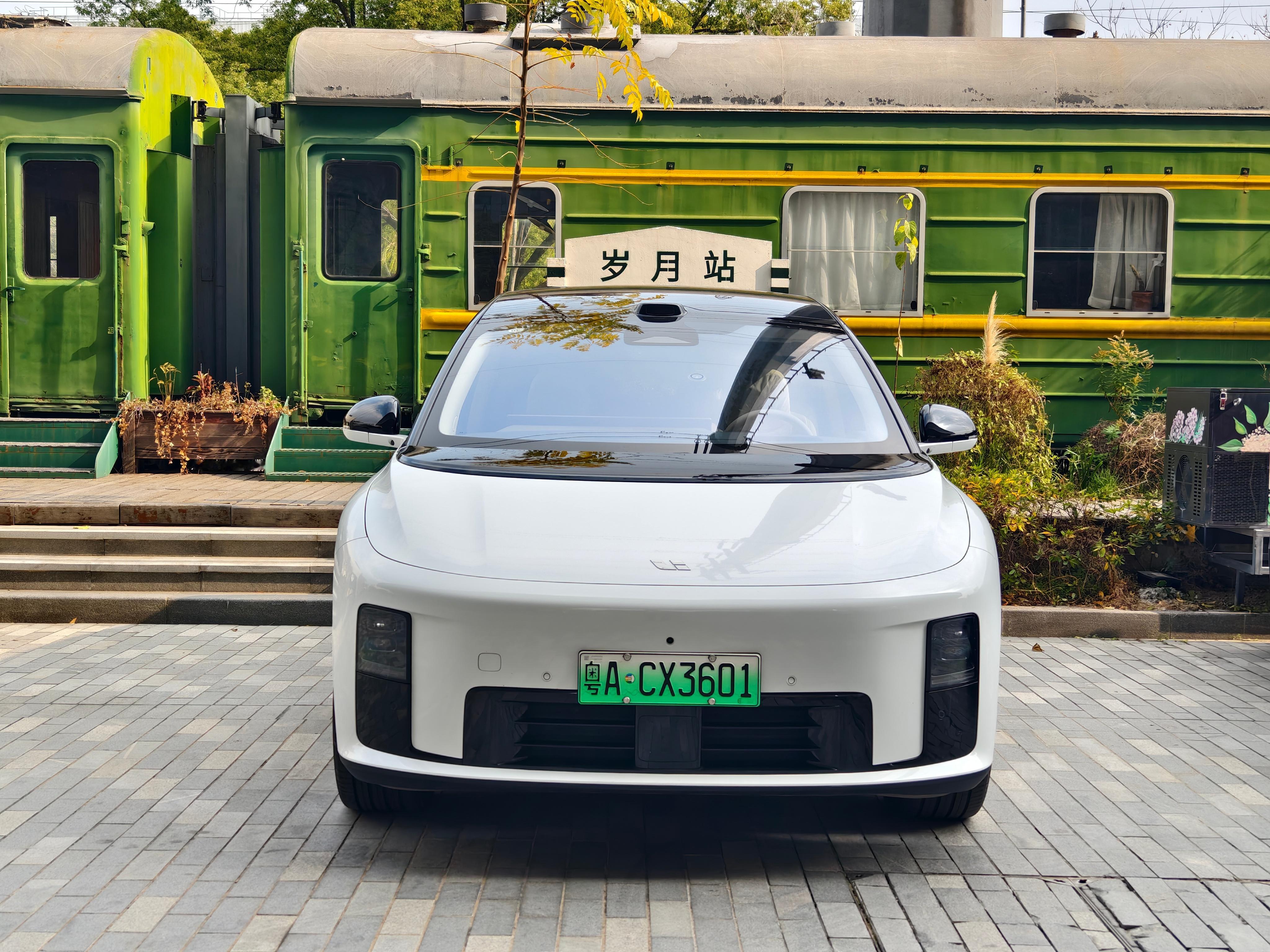 绿皮火车背景下的理想i8,正面是真好看。