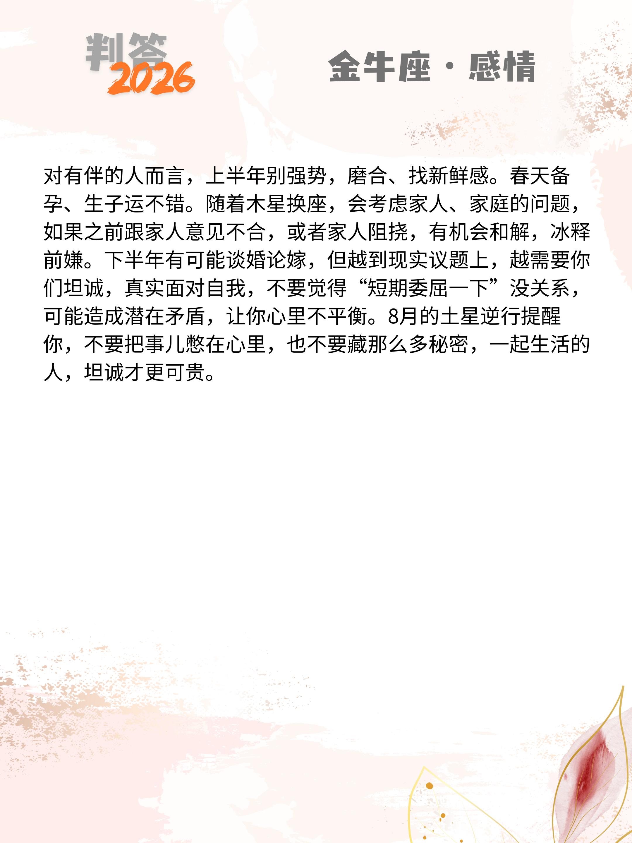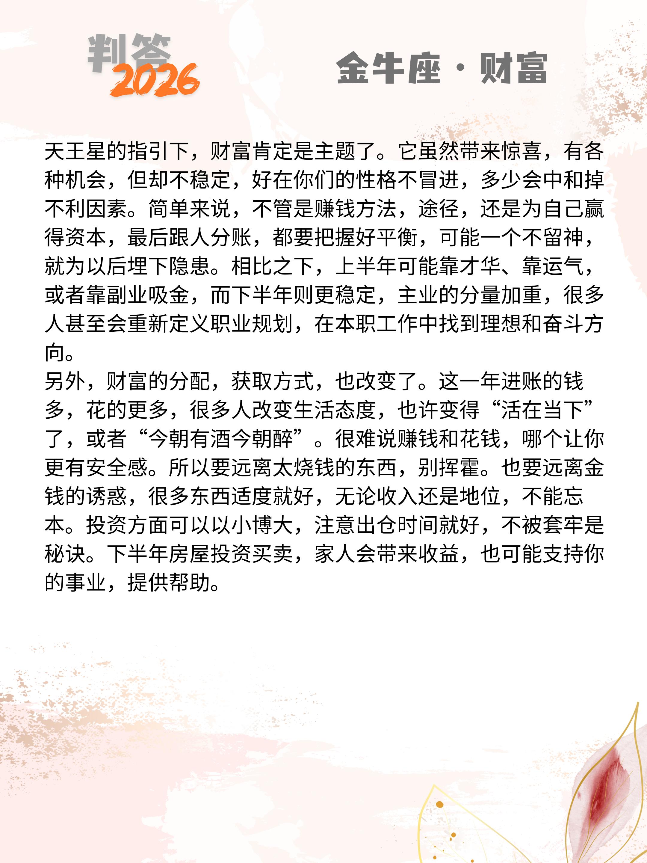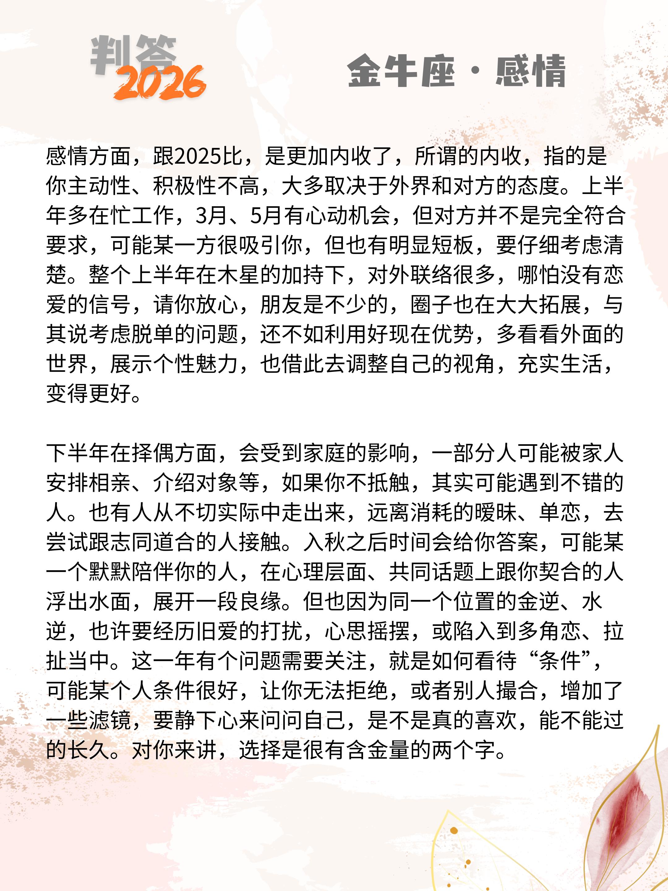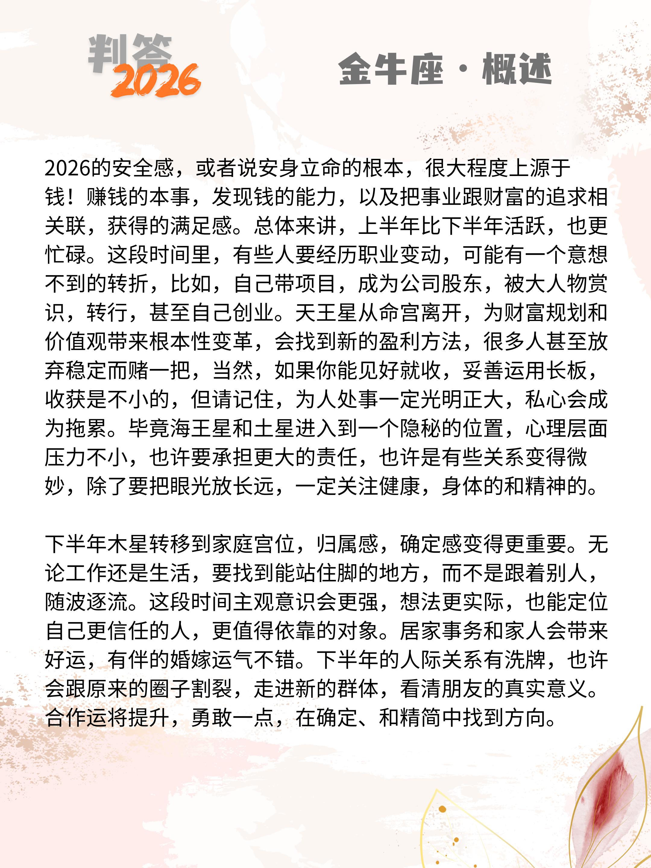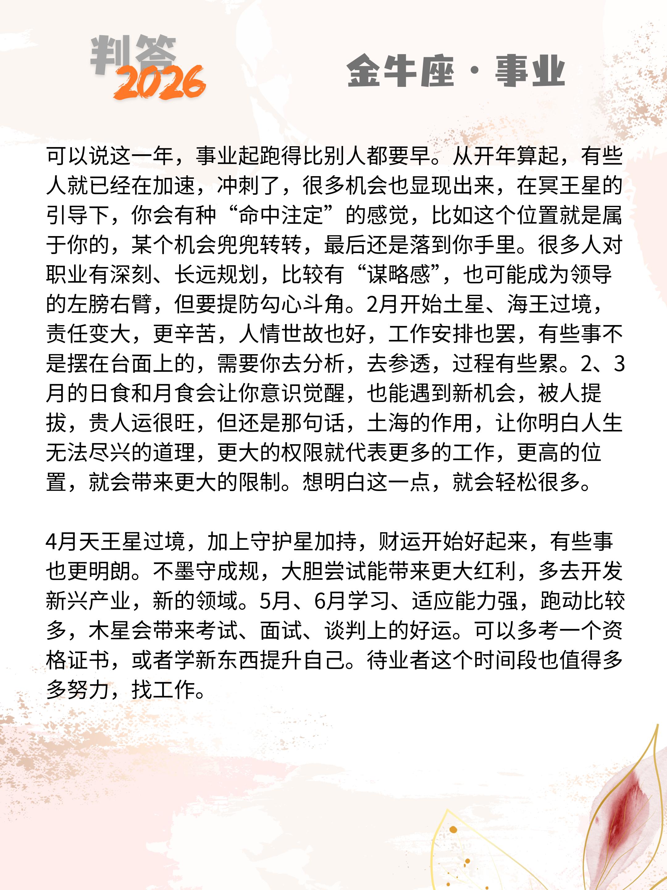 判答独家·2026年运丨金牛座预报来啦。参考太阳+上升,祝你贵人相助...