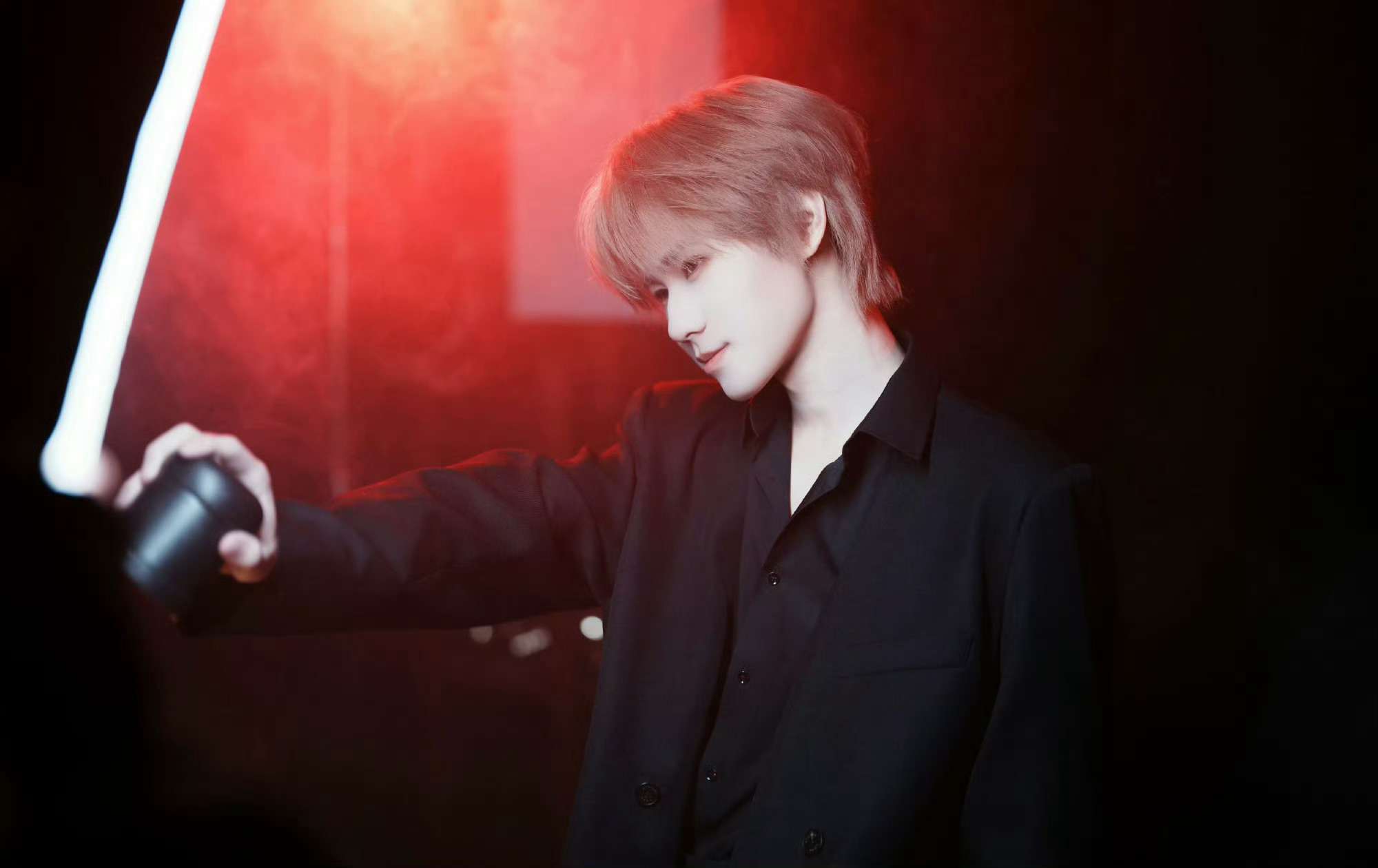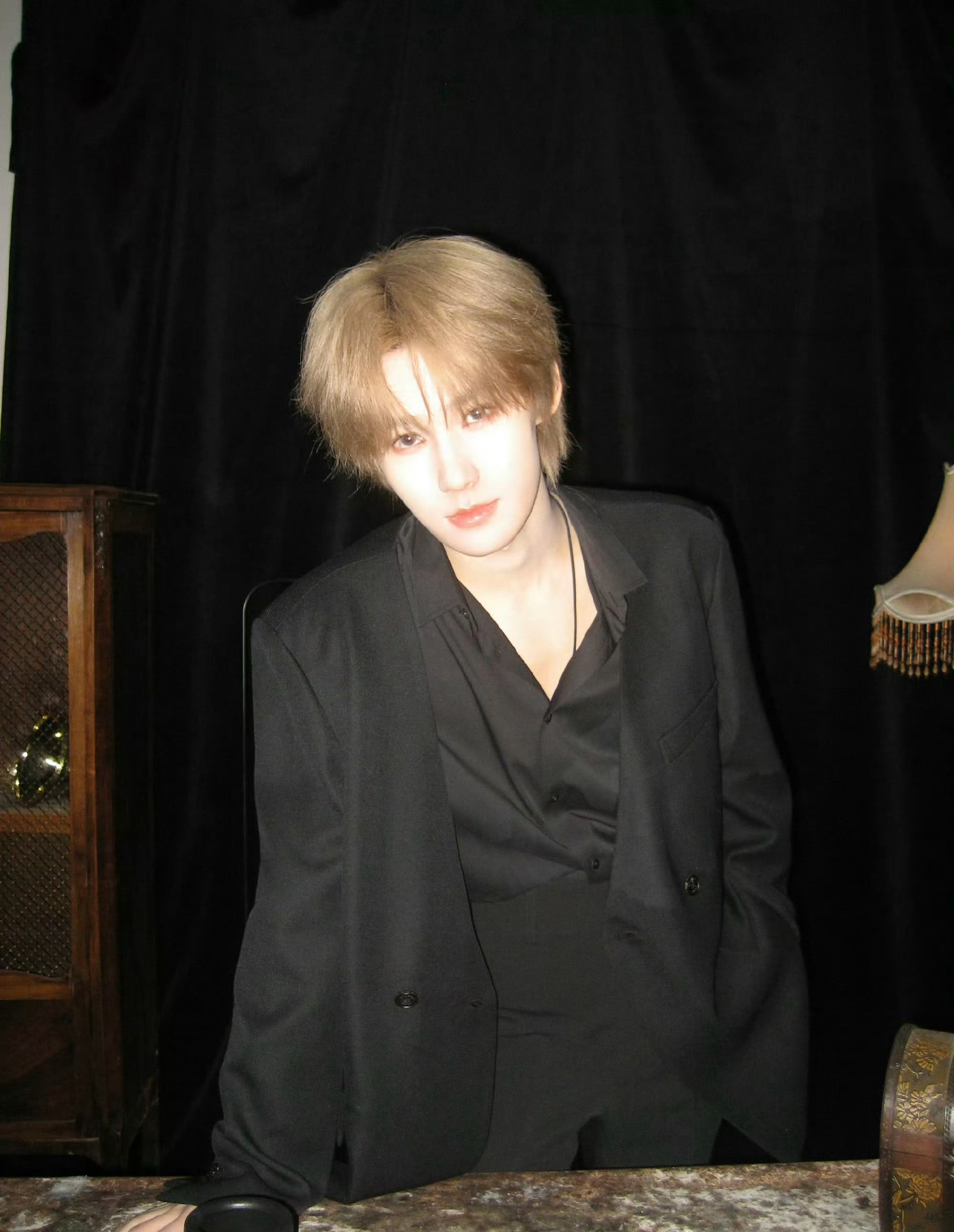 张真源|最新黑色西服套装营业大片,身穿455EMBLE 廓形西装,搭配浅金色头发,矜贵迷人🤩
