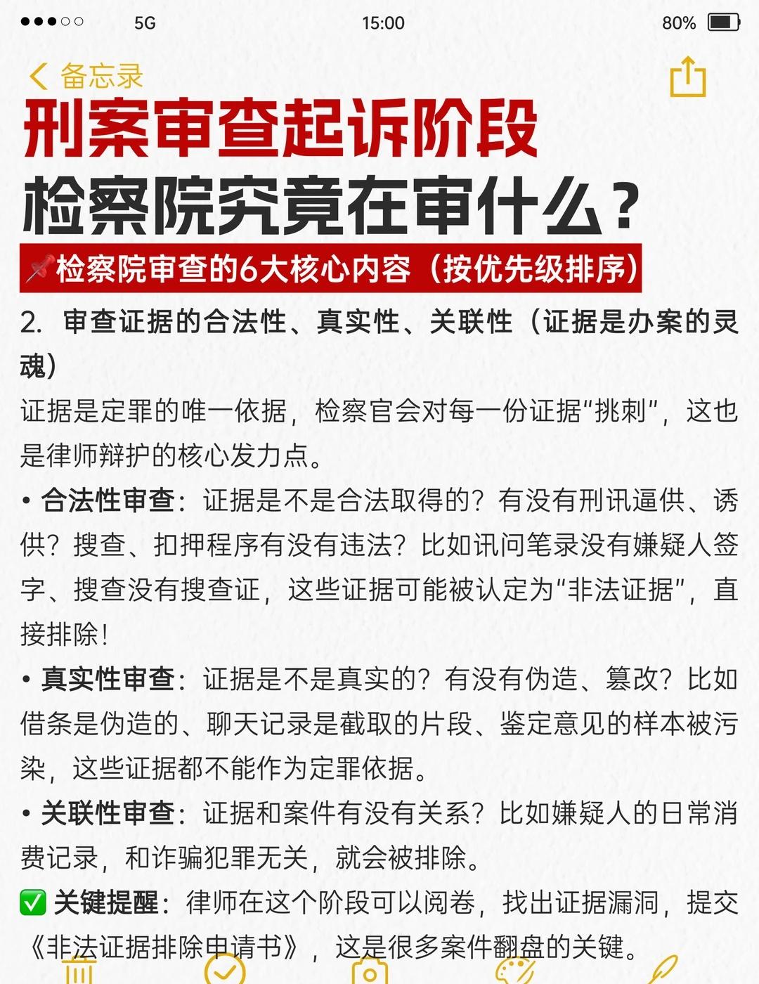 刑案审查起诉阶段,检察院究竟在审什么? 刑事案件到了检察院审查起诉阶段,就到了“承上启下的关键拐点”——公安侦查的证据能不能用?嫌疑人该不该被起诉?是判重刑还是争取不起诉?全看检察院这一步的审查结果。很多家属只知道“等消息”,却不知道检察官到底在忙活什么。今天拆透检察院审查起诉的6大核心内容,帮你搞懂案件的翻盘机会在哪里刑事辩护 刑事辩护律师 刑事律师 律师咨询 律师 刑事会见 取保候审 刑事 咨询 法律