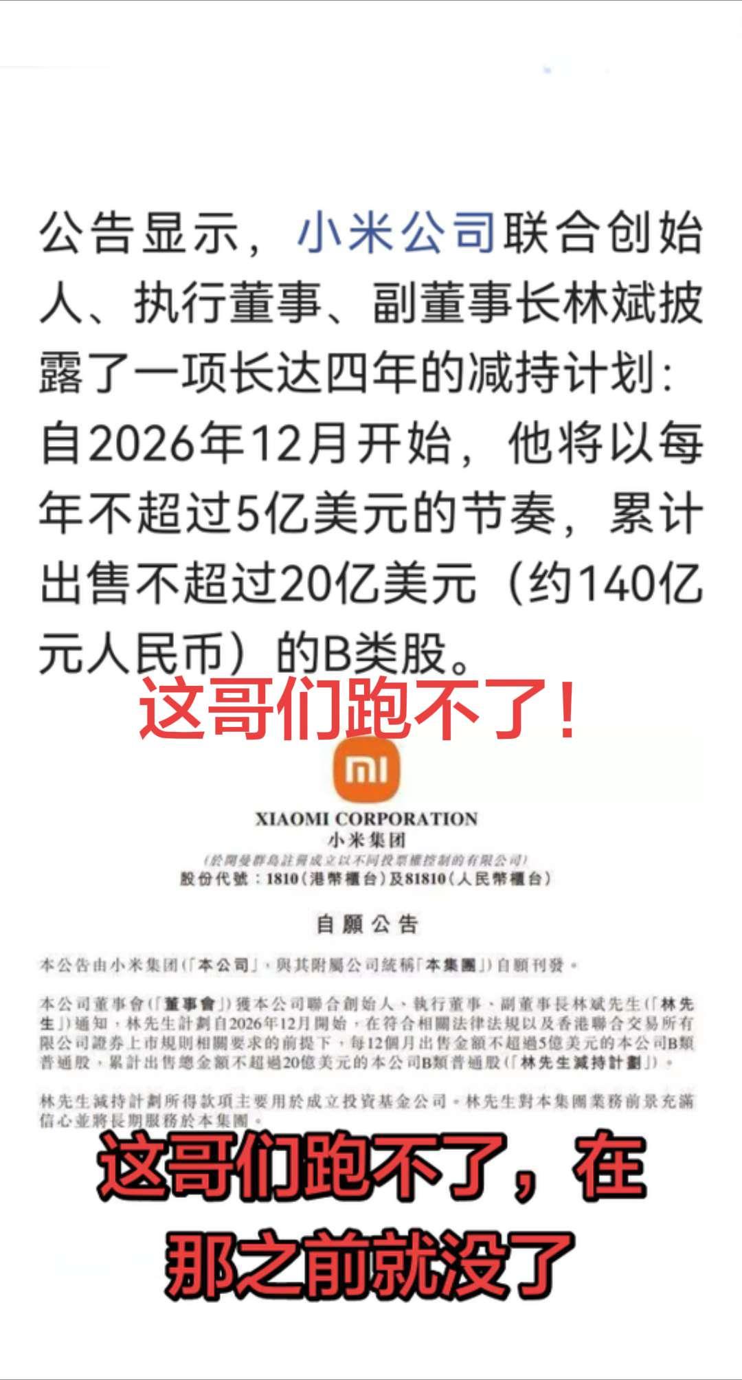 这哥们跑不了,在那之前就没了!小米 小米汽车 小米手机 雷军
