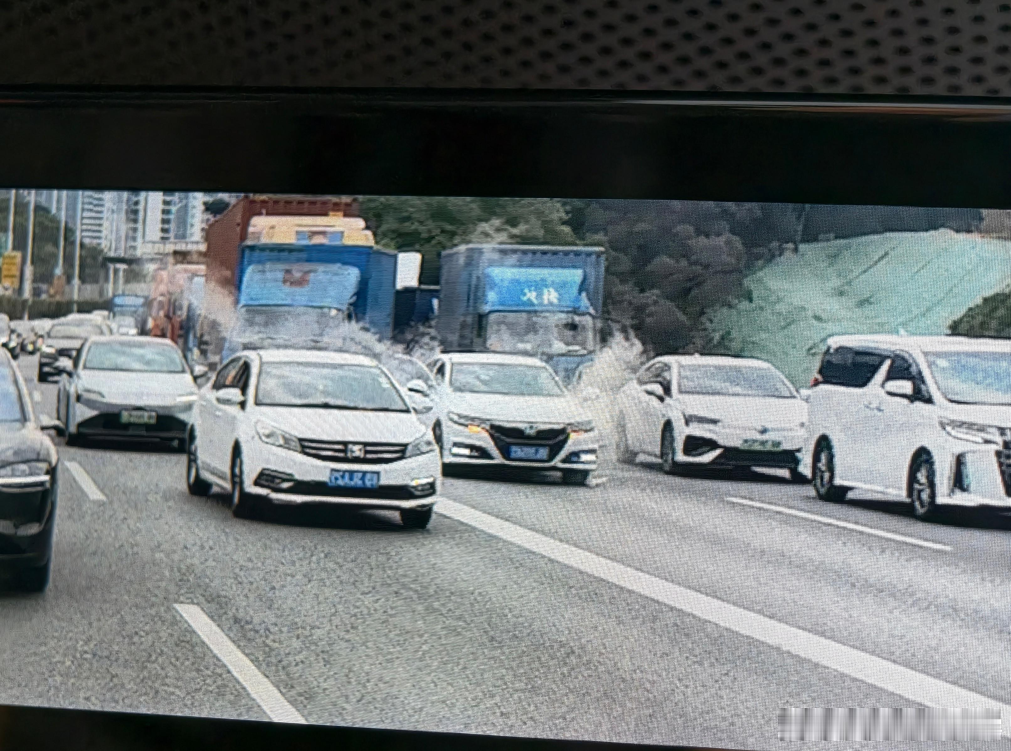 开着开着这辆白色油车突然冒了好多烟,吓我一跳
