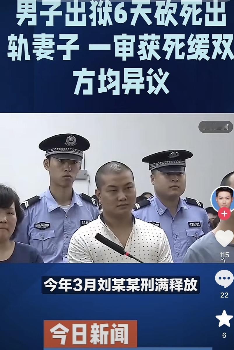 刚从牢里出来6天 就砍死自己出轨的妻子 太不值了,妻子不忠可以离婚,不至于搭上自己的命。 男子曾因为卖死因不明的猪肉而获刑六个月。出来后发现妻子有酒店开房记录,他怀疑妻子出轨,就要求查看酒店监控。 多次要求妻子配合查看监控,妻子都不配合,于是就以杀掉两人的亲生女儿来威胁妻子妥协,妻子好说歹说才暂时稳住了男人。 第二天,男人再次要求妻子叫上亲属查看酒店监控记录,两人再次发生争执,突然这男的就冲进厨房拿起菜刀连续砍向妻子的头部数刀。 妻子拼命呼救,男子挥刀乱砍。男人发现妻子伤势严重,存活不了,就把刀砍向自己头顶,颈部,割自己的手腕,但是没死成。 法院一审判他故意杀人罪,处死刑,缓期两年。他认为量刑过重,提起上诉被驳回。 妻子出轨是道德败坏,并不能成为他杀人的理由!