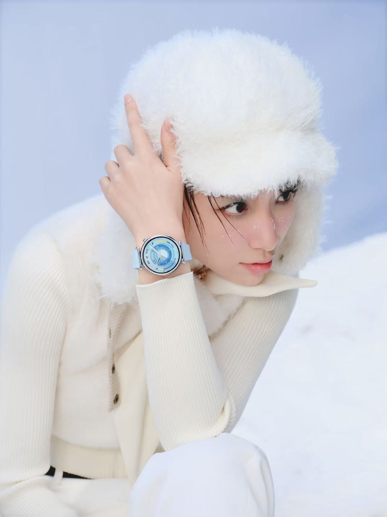 李斯丹妮冰雪蓝精灵李斯丹妮为华为WATCH GT 6拍摄的冰雪主题大片来了!黑色短发配白色高领毛衣,手腕上那块冰雪蓝手表瞬间点亮造型。她趴在毛绒毯子上托腮微笑,眼妆blingbling的像撒了雪花,整体淡蓝色背景超梦幻。这款手表不仅颜值高,还能滑雪计时,李斯丹妮这是要种草整个冬天啊!最适合淡人的冬日氛围感妆容