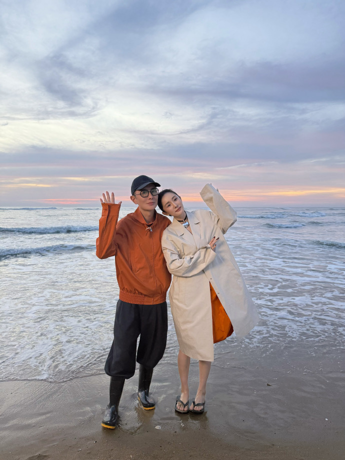 刘冲晒和杨幂海边合照 刘冲晒和杨幂海边合照。