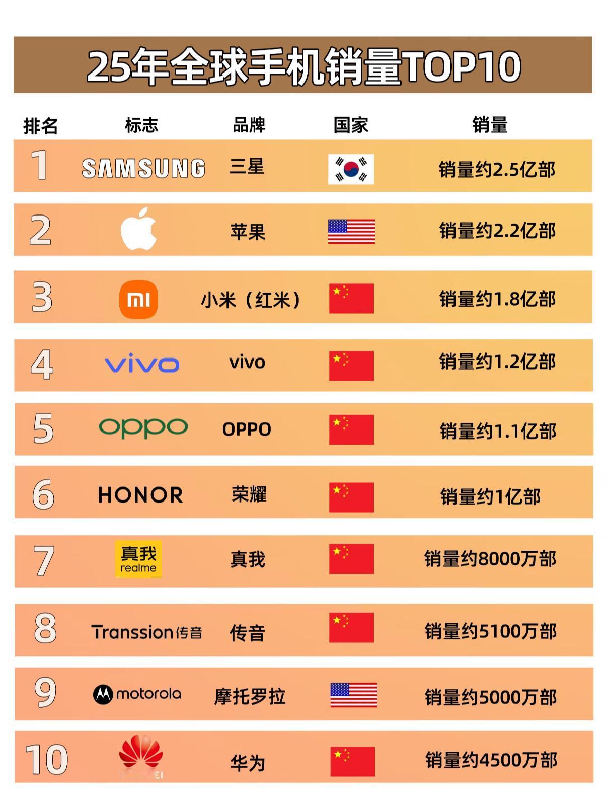 今年的手机销量排行榜来啦, 三星手机已经连续12全球销量第一, 苹果稳居老二, 小米第三, 华为以4500万部销量排名第10。 让人没想到是Vivo和OPPO这两个品牌长期过亿销量,一直默默赚钱。 还有摩托罗拉,现如今都还有5000万部的高销量,摩托罗拉的用户群体是哪些人呢?