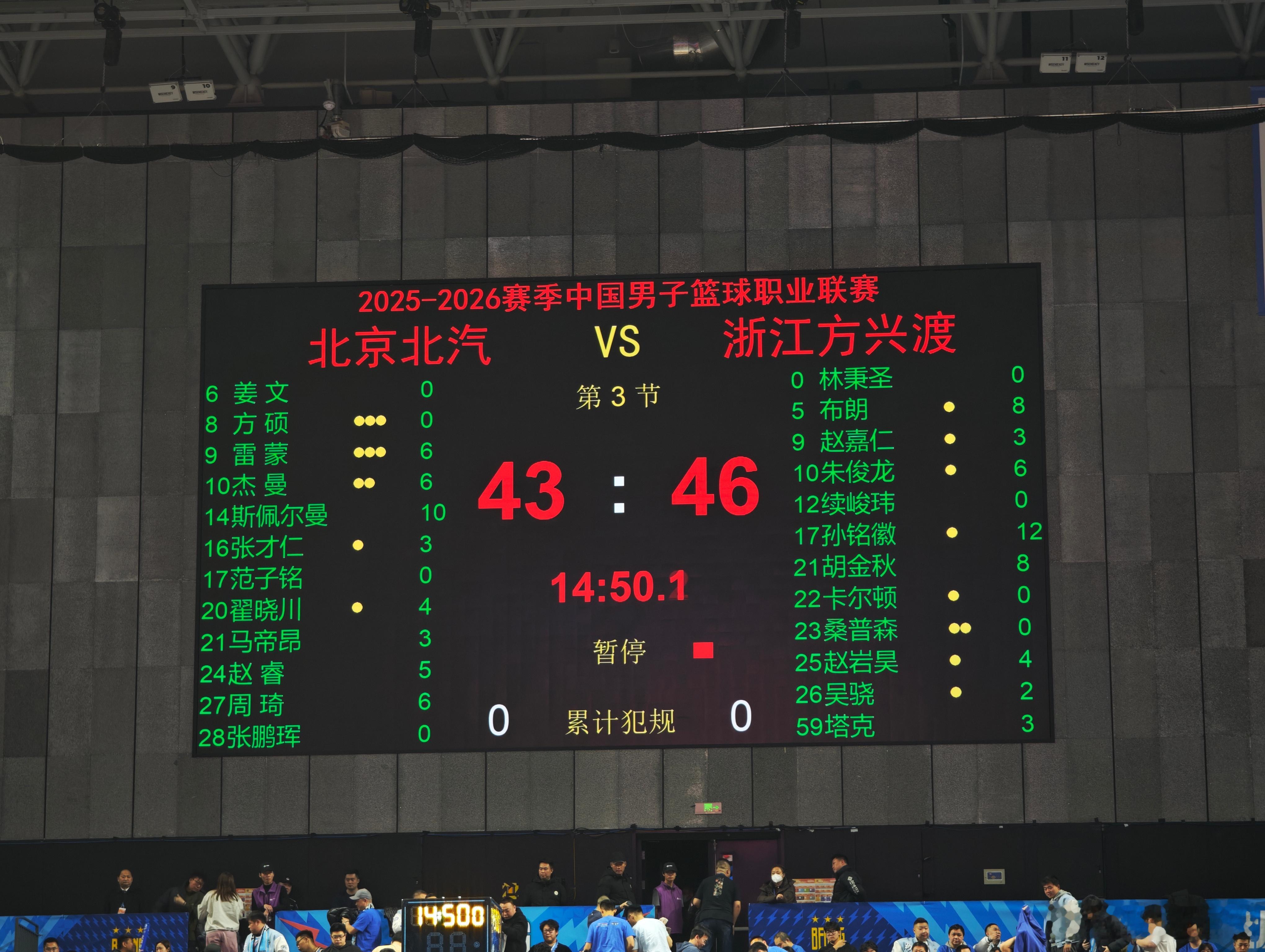 北京男篮vs广厦男篮拳拳到肉,总决赛级别的对阵。北京队在第二节结束前,被广厦打了一波11-2,这期间孙铭徽连续命中两记三分。北京队半场出现了7次失误,广厦只有3次。