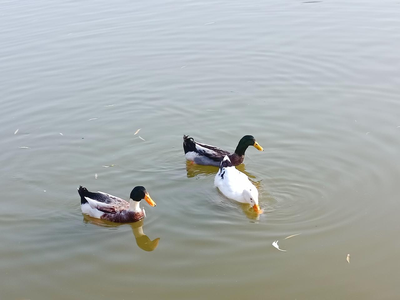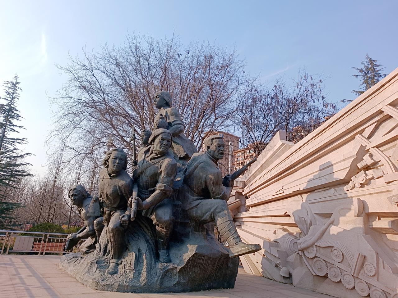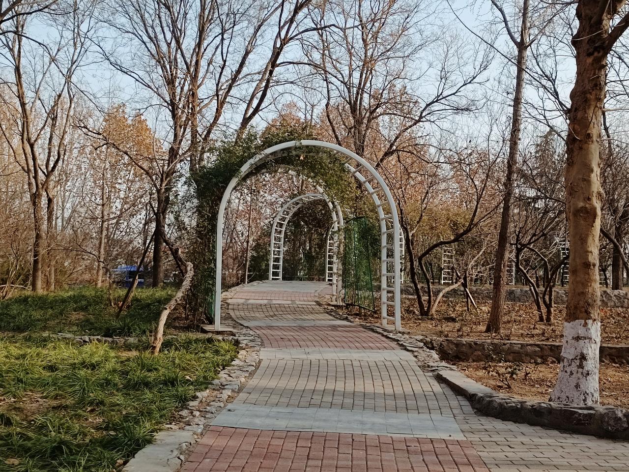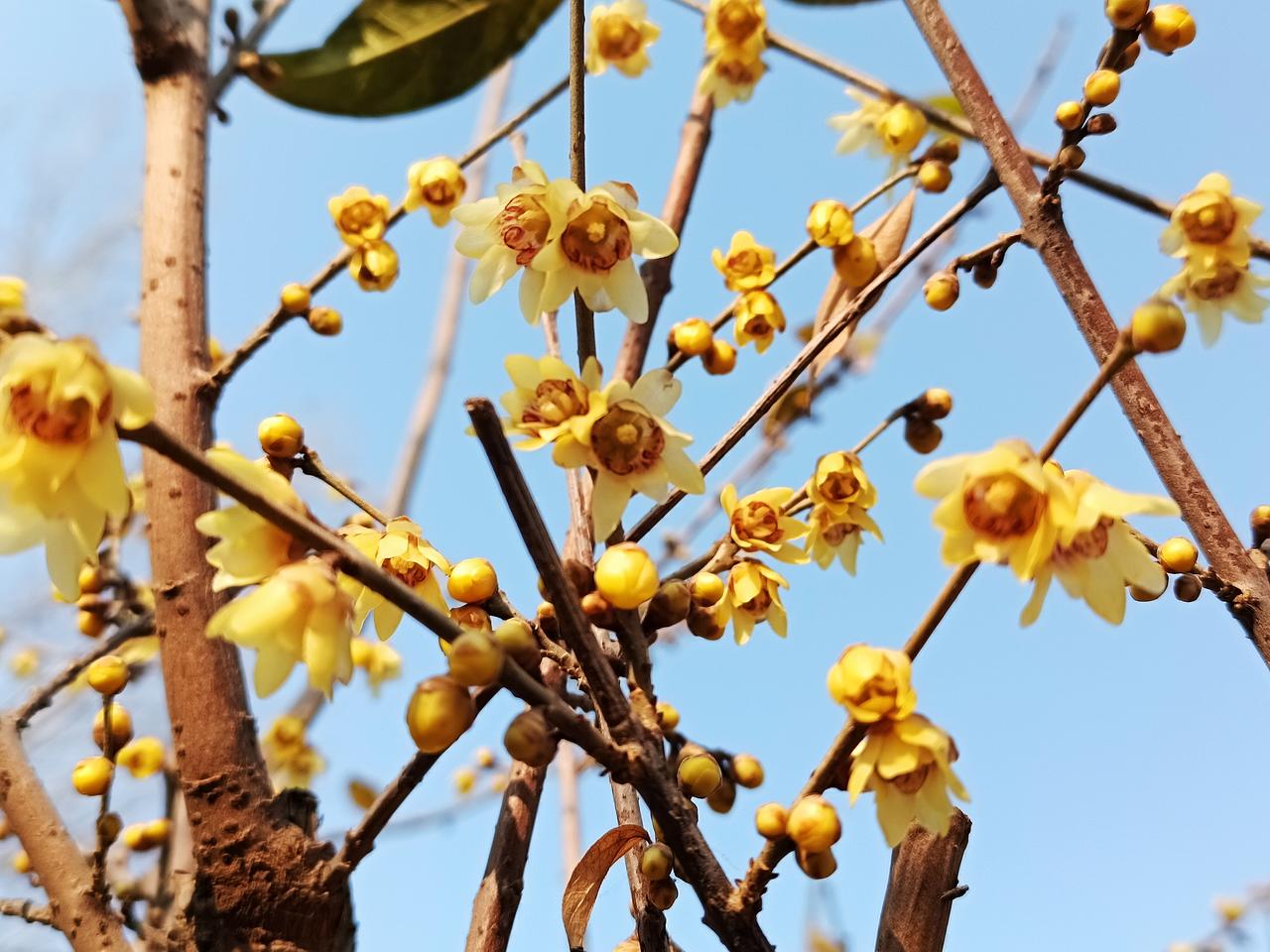 “一花香十里,更值满枝开”,为了寻这满枝腊梅,24号跑了十方院,27号又去了裕西公园,终究还是没看到满枝开。今日约了姐姐去东环公园散心,听说这里也有许多腊梅,便抱着一丝期待前往。 东环公园是座以自然式生态园林为主题的大型城市公园,三季有花、四季有景,既能观光休憩,也能健身娱乐,还是应急避难的好去处。园里的雅清湖约1.6万平方米,环湖有观景平台、碧波广场、诗画长廊广场与浣溪叠瀑等景致。湖水悠悠,三只鸭子在水面悠游,憨态可掬的模样,瞬间让人心里软乎乎的。 公园里还有一处爱国主义教育基地,立着《英雄赞歌——李混子抗日民兵群雕》,主雕以青铜与花岗石打造,高5米,旁侧的浮雕墙则有7米高,肃穆又震撼。 绕了一圈,总算寻到腊梅丛。远远望去,枝桠间大多是紧实的花骨朵,正失望时,一位拍照的姐姐热情招手:“我看了,就这株开得好,你来拍吧!”走近才发现,最北边的那株腊梅,果真绽了些细碎的小花。赶紧举着手机抓拍几张,虽说没见到满枝怒放的盛况,但这零星的金黄,也让此行多了份意外的欢喜,总算没白来呀!