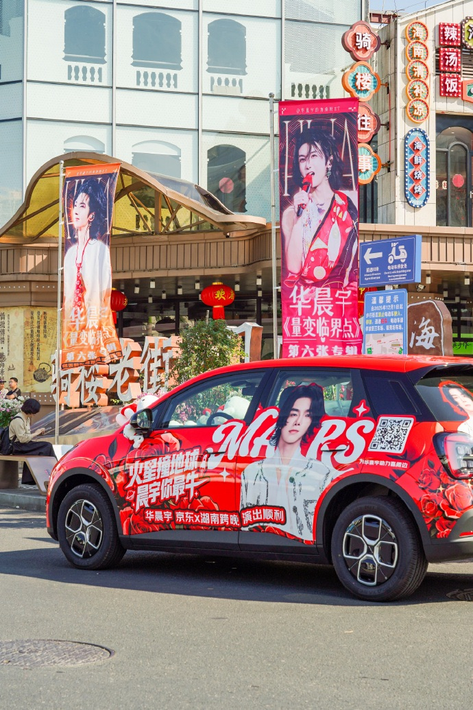 网友偶遇京东跨晚大奖车 京东在海口给花花跨晚安排上了痛车应援,整辆车都是花花的应援色和元素,细节质感都很到位,一看就是用心做的,再配上街头的应援横幅,这波真心满分,谁看了不说一句京东太会了!
