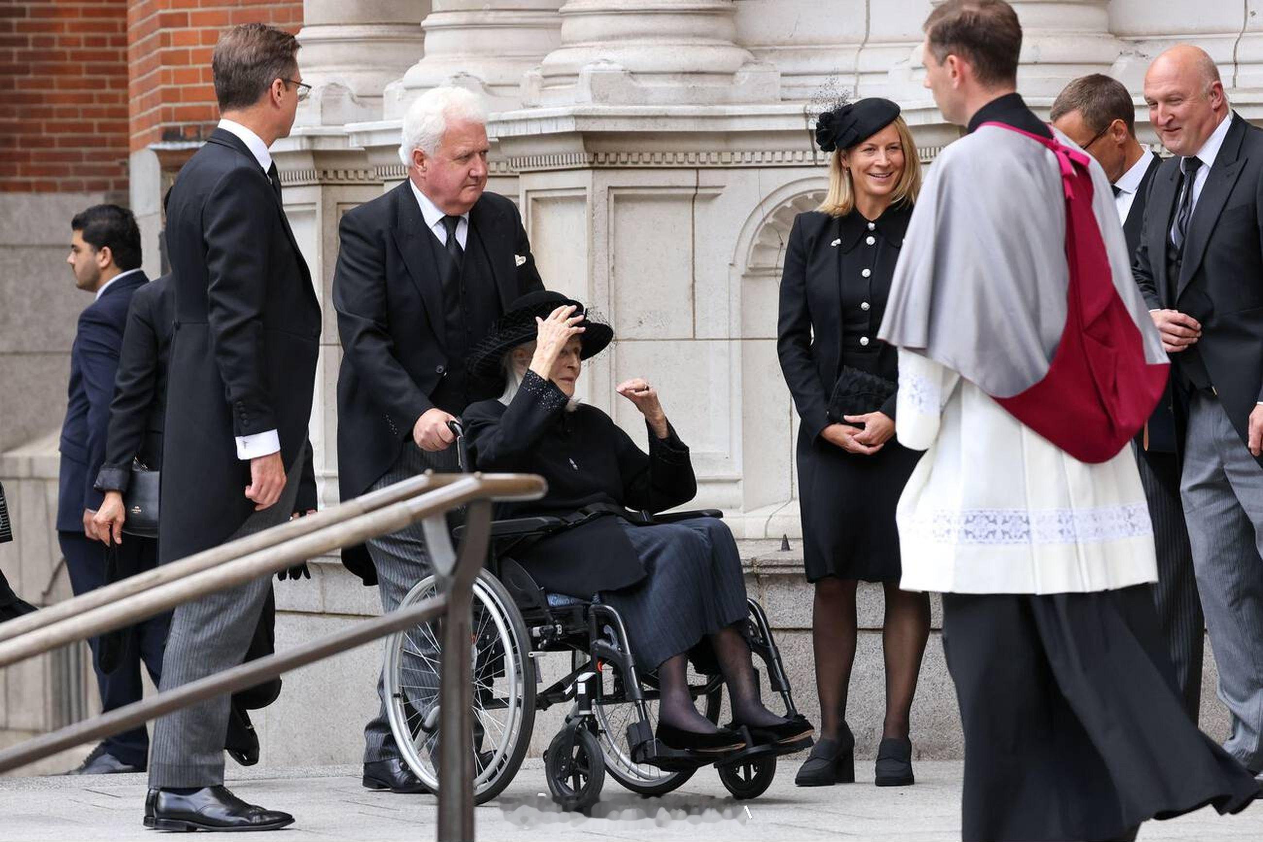 英国王室 2025年9月16日,奥格尔维夫人亚历山德拉公主乘坐轮椅抵达威斯敏斯特主教座堂,参加她已故的嫂子肯特公爵夫人凯瑟琳的天主教葬礼🖤在她左边的男子是她的堂侄女婿,即格洛斯特公爵夫妇的女婿George Gilman,右边的女子是堂侄女Lady Rose Gilman。