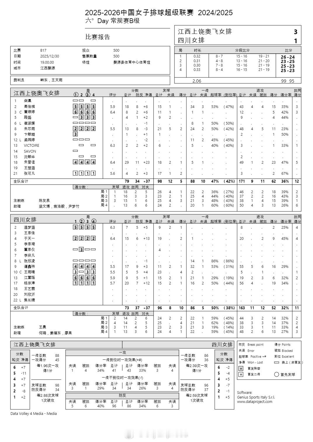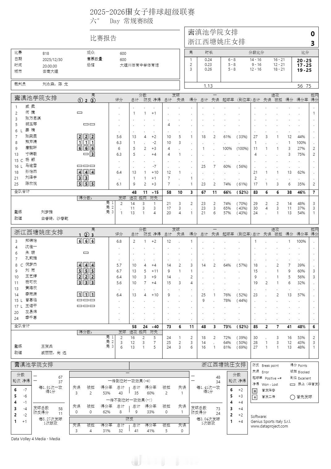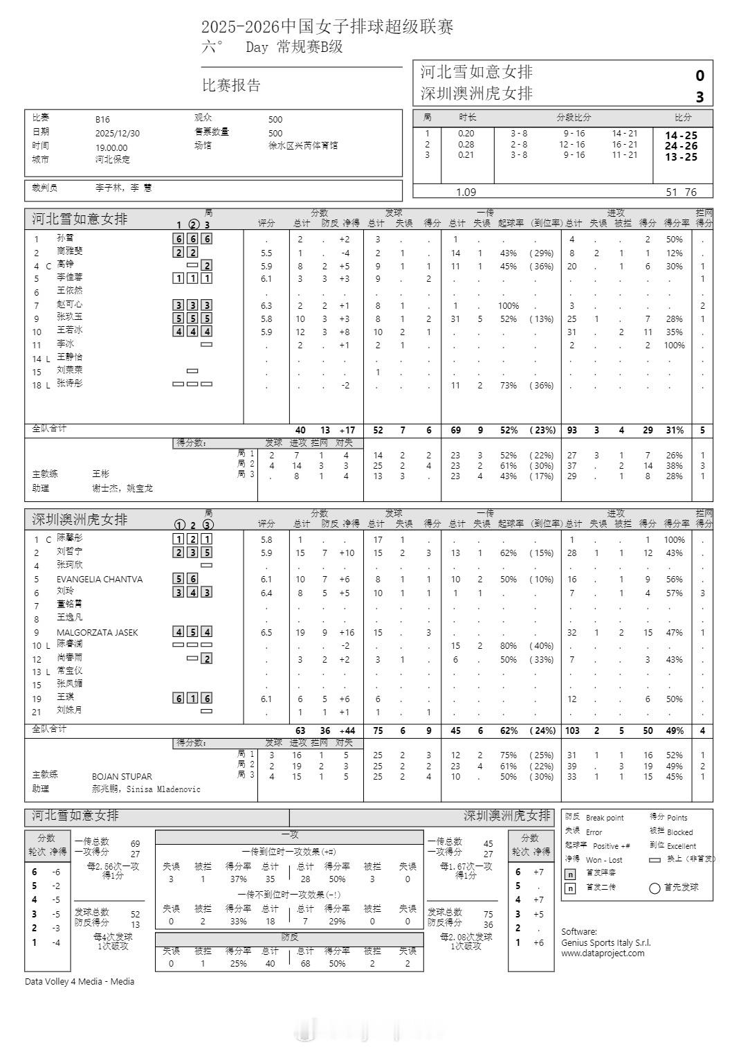 排超联赛 12月30日,女排联赛第六轮三场B级赛技术统计。