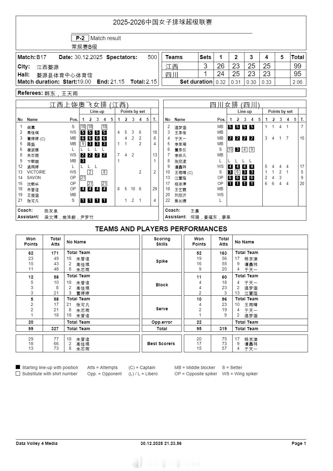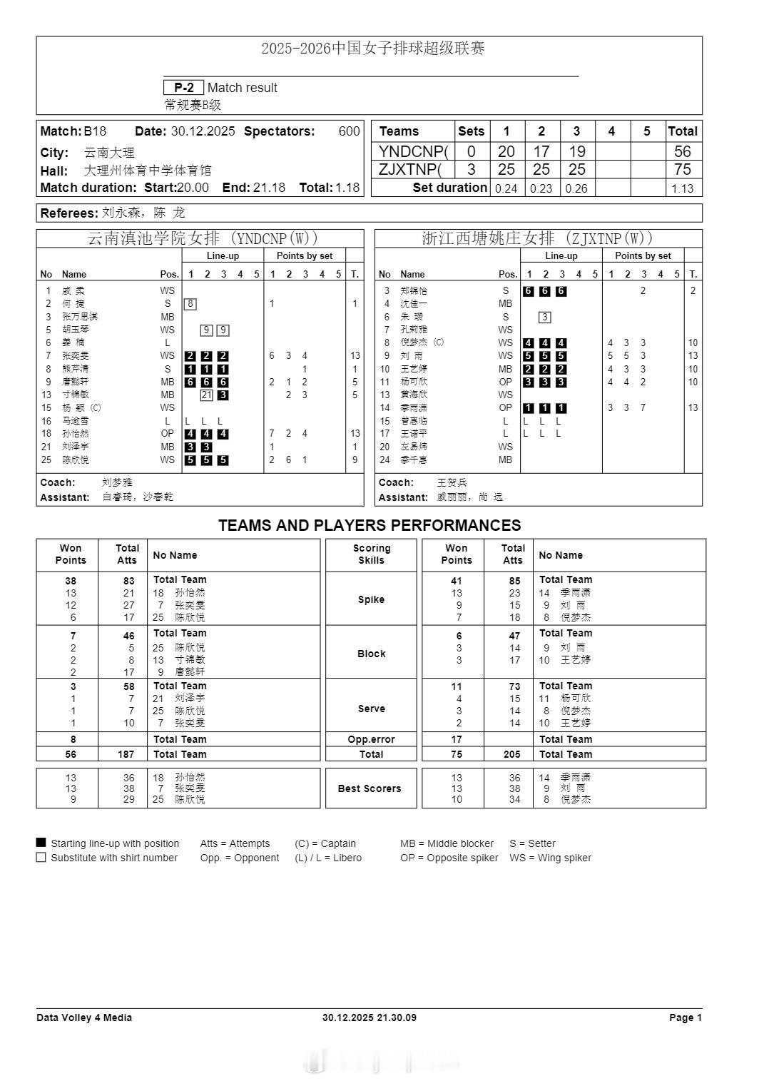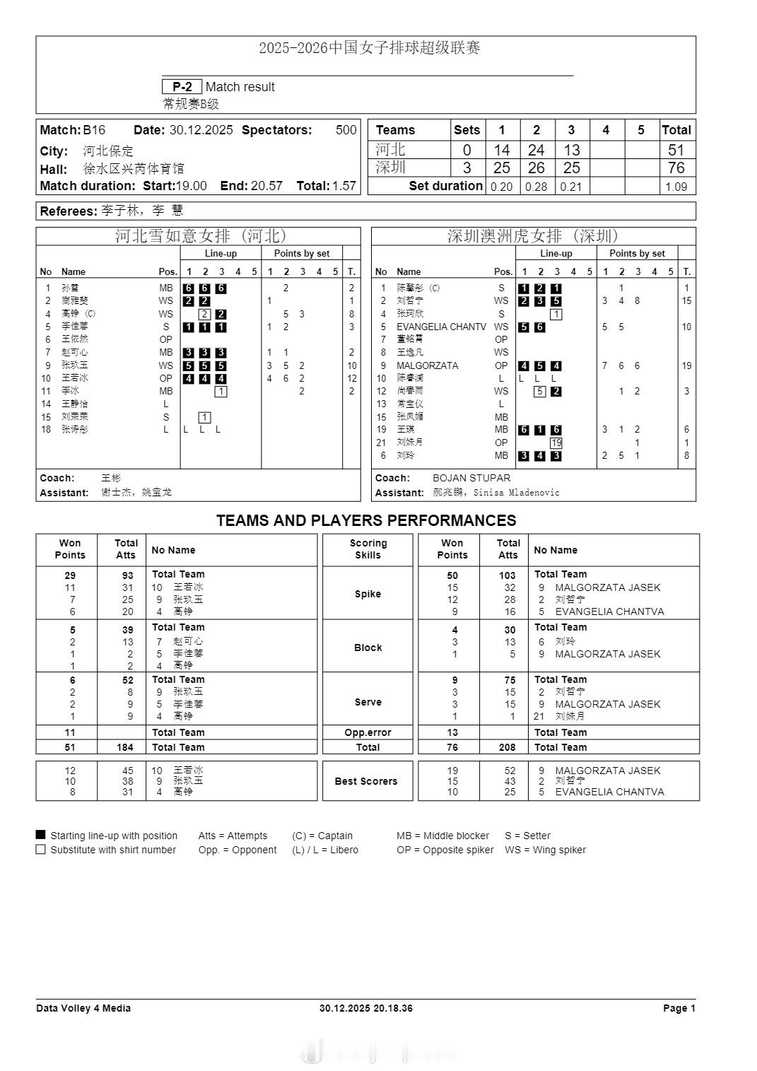 排超联赛 12月30日,女排联赛第六轮三场B级赛技术统计。
