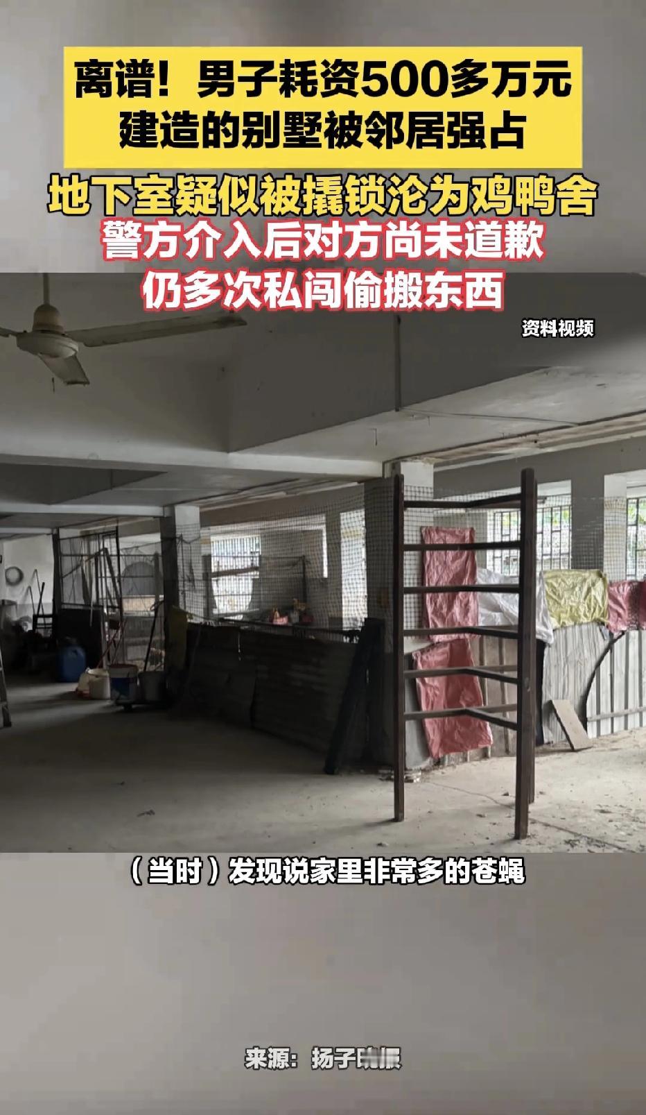 福建泉州,一男子花500万建了一栋别墅,由于家人长期在外经商,别墅一直空置,也没有人管理,本以为别墅肯定完好无损,不料,男子回家祭祖时却发现,别墅早就被邻居撬锁进去强占了,而且地下室还被用来养鸡鸭,臭味熏天,根本就没办法住人了。 据了解,这栋别墅2000年左右就建成了,带花园带泳池,当年的装修和建造总投入花了500多万,放在现在也算是豪华住宅了。 后来,陈先生家老人过世,一家人又都在外经商,别墅就长期空着,门窗也都牢牢锁好了。 可谁能想到,这一空置竟给了别人“鸠占鹊巢”的机会。 今年冬至,陈先生回老家祭祖,想着去看看自家的老别墅。还没推开大门,一股刺鼻的臭味就扑面而来,院子里苍蝇乱飞,跟以前干净整洁的样子完全两样。 更让他纳闷的是,隐约能听到地下室传来“咯咯咯”“嘎嘎嘎”的叫声。 这房子里怎么会有鸡叫?陈先生赶紧开门进去查看。一到地下室,眼前的景象让他当场气炸! 原本装修精致的地下室,被硬生生搭了三四个鸡舍,四五十只鸡鸭在里面乱窜,墙壁和地面上满是鸡粪、污渍和饲料残留,脏得下不去脚。 好好的别墅变成了养殖场,换谁都受不了。陈先生当即就报了警,民警到现场后,建议他别破坏被撬的门锁,先加装一把新锁保护现场。 可谁能想到,这邻居胆子大到没边了。报警第二天,陈先生再去别墅时,发现地下室的鸡鸭全不见了。 他仔细一查,才发现旁边的储藏间也被邻居占了,门锁都被私自换掉了。等他准备给储藏间加锁时,里面的工具、煤气罐、笼子又被人偷偷搬空了。 警方都已经立案了,对方还敢三番五次潜入别墅转移东西,简直让人愤怒不已。 而且,从现场的脏乱程度和改造痕迹来看,邻居占用别墅绝对不是短期行为,大概率已经住了挺长时间。 更让人揪心的是,这不是陈先生第一次遇到这种事。两年前,他家同村的一处闲置厂房,就被人破锁进去养了鸡鸭,当时投诉了好几次,最后也不了了之。 现在这栋别墅更惨,长期养家禽导致异味渗进墙体,地下室装修彻底损毁,整栋房子脏得根本没法居住。 陈先生后续还得请专业消杀公司彻底清理,还得装监控,又是一笔不小的开支。 警方调查后确认,强占别墅的就是隔壁邻居。后来对方通过中间人传过一句“道歉”,但态度敷衍得很,根本没真正认识到自己的错误。 陈先生说,这不仅是钱的损失,更是对祖宅的不尊重,他肯定要追究到底,让对方赔偿所有损失。 事件曝光后,有网友说“这哪里是邻居,分明是强盗!别人的房子再空也是私人财产,撬锁占用还破坏,太无法无天了!” 有网友说:“最气的是立案后还敢偷偷转移东西,这是没把法律放在眼里啊,必须重罚才能以儆效尤!” 还有网友说:“空置房屋确实容易被盯上,但这不能成为侵权的理由,希望陈先生能维权成功,也给其他人提个醒。” 其实这事儿看着荒唐,背后暴露的问题挺值得深思。首先是部分人法律意识淡薄到可怕,觉得“房子空着也是空着”,就理所当然占为己有,却不知道非法侵入住宅已经涉嫌犯罪。 其次,陈先生两年前就遭遇过类似情况,投诉后没得到妥善解决,或许也让这位邻居有了“占了也没事”的侥幸心理。 还有个关键点,空置房屋的保护问题。现在很多人因为工作、经商等原因,房子长期空置,这就给了别有用心的人可乘之机。 建议大家要么委托亲友定期照看,要么装个远程监控,有条件的话可以短租出去,别让自己的财产处于“无人看管”的状态。 对于此事,你怎么看呢?