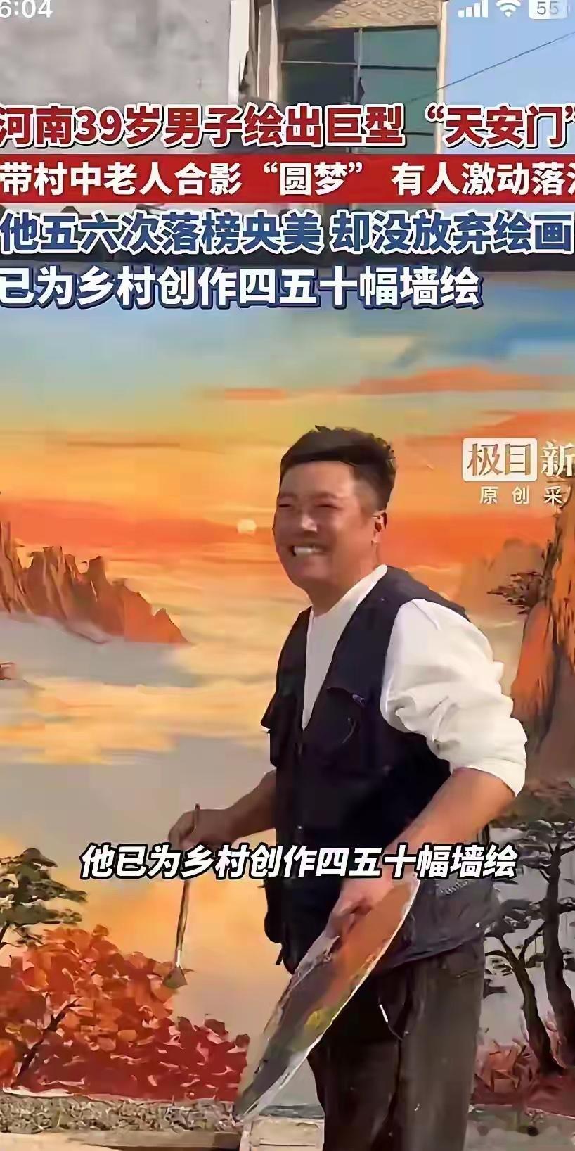 当大众感叹于只有初中毕业文凭的青年农民画家手绘的墙壁画大气磅礴、催人泪下的时候,中央美院的专家教授们很可能对他的绘画水平依然不屑一顾。即使吴承言的手绘墙壁画已经引来人民日报的大声喝彩、得到万千民众的由衷赞叹,我们也没有看见有哪一位中央美院的专家教授站出来夸赞一句。不得不说,共情这个东西,只存在于相同阶层的人群当中,富人与穷人、精英与大众,对同一个事物的感受和认知似乎永远都是冰火两重天…天安门河南