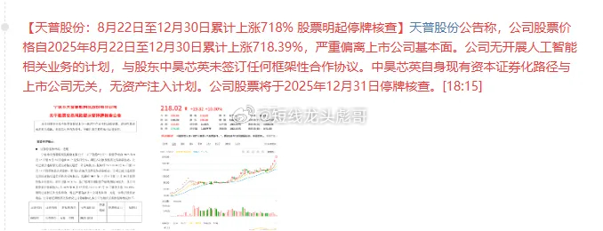 天普股份第三波2连板,5天3板停牌!昨天12连板胜通能源停牌,10连板的嘉美包装再涨就申请停牌。这么一看,第三波加速的商业航天龙头航天发展止步2板,冲涨停跳水下跌,避免小黑屋。最近高标连板,高标趋势都很强,主要就是JG放松。连板之前再6板,7板卡异动,所以都是到这个位置主动断板,最近放松,12连板才停牌。趋势高标更是,最近航天发展卡异动,卡着卡着就发现不用卡,直接趋势涨停加速,一众高标连板都是加速疯狂。现在高位又开始接连停牌,恰逢月底,高位股要集中释放风险。市场好的时候紧一些,市场差的时候松一些。量化,游资玩的明白!
