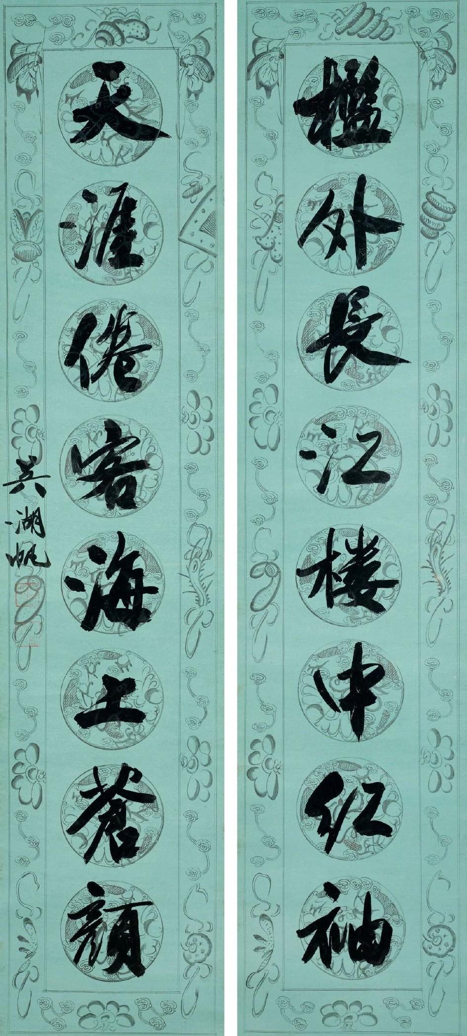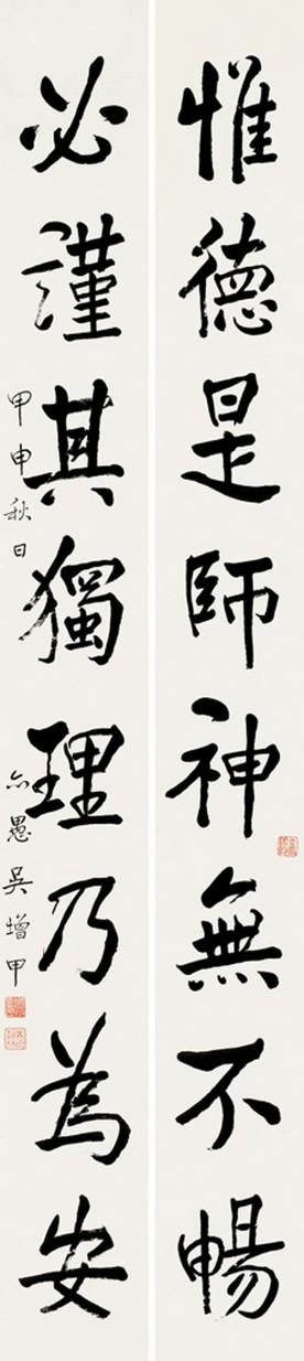 吴湖帆 行书 八言联 ​​​ 《清流激湍映带左右,朝晖夕阴气象万千》 吴增甲 行书 八言联 ​​​ 《惟德是师神无不畅,必谨其独理乃为安》 俞樾 篆书八言联 《及时为乐请自今始;于世无争长如古初》 任堇 行书八言联 ​​​ 《画日濡毫凌云授简,粲花著论积叶肄书》 王蕴章 楷书八言联 ​​​ 《六经以来武侯二表,百世而后朱子一人》 姚元之 隶书八言联 张廷济 隶书八言联 杨沂孙 隶书八言联 ​​​ 《积善之家必有余庆,资富能训惟以永年》 湖帆 行书八言对联 《槛外长江楼中红袖,天涯倦客海上苍颜》