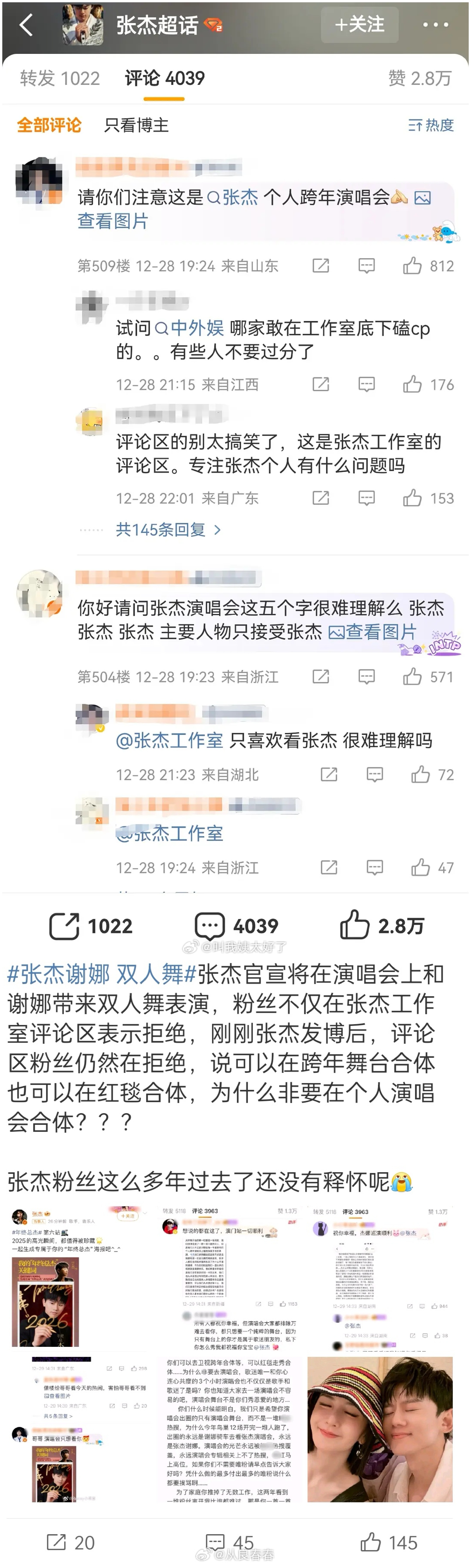 2025-12-30总结①林丹,天王杯赛事官方微博误发直播屏蔽词清单 图1②腾讯音乐2025年音乐榜单 图2③闫学晶直播为儿子哭穷 图3④林俊杰官宣恋情,带女友为妈妈庆生 图4⑤灵超打私生 图5撕❶杨紫vogue hk开年,衣服设计师灵感来源于迪丽热巴,照片姿势被指相似 图6❷杨紫,华伦天奴到期 图7❸骄阳似我,演员赖伟明因在个人账号发布调侃其饰演角色“庄序”的代打视频,引发原著粉丝强烈不满后删除内容 图8❹张杰粉丝不满张杰的个人演唱会上,张杰和谢娜要跳双人舞 图9张杰演唱会上回应,我也有个家,做歌手前要做个好男人,为谢娜做了一首歌 图10❺白衣公卿,王玉雯对接通知物料比龚俊家早,龚俊粉要求删掉王玉雯戏份 图11❻时代峰峻新发的物料进度条用的是王橹杰豆瓣辱磕组的黑称 图12❼罪罚2,黄景瑜粉维权,粉丝扒出剧宣发皮下磕过cp 图1328号网页链接