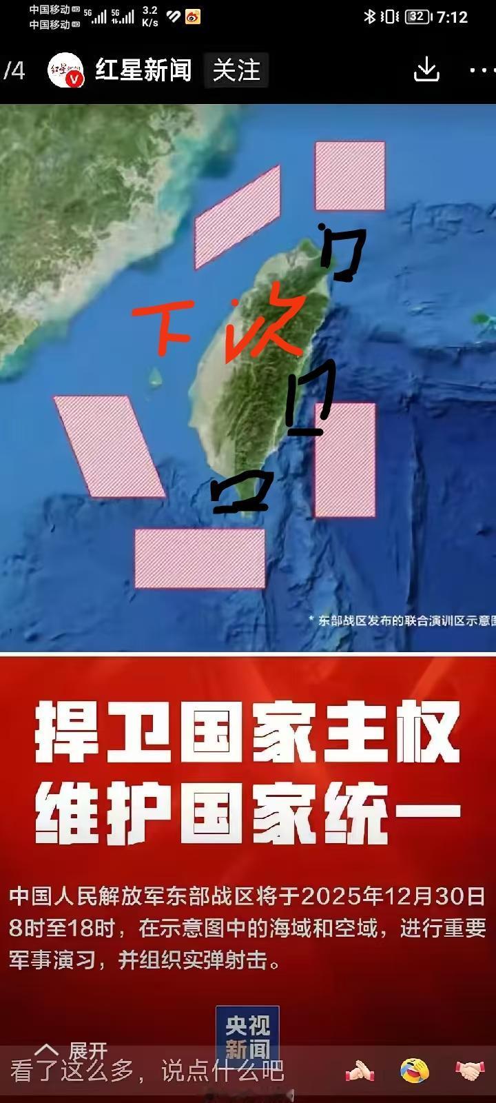 祖国统一大趋势! 台独死路一条,和平统一才是未来! 为什么民进党若再执迷不悟,最终只会14亿人民加2300万台胞,最终只会被世界人民唾弃,被史历钉在耻辱柱上留名。 祖国统一必须的,大势所趋,任何分裂行径,终究螳臂当车! 希望下次军演解放军进入宝岛上空。 胆大就是胜者,解放军加油!台湾回归必须到来!