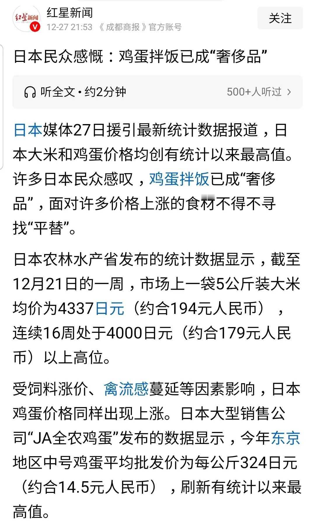 日本斩杀线,吃不起鸡蛋拌饭了!