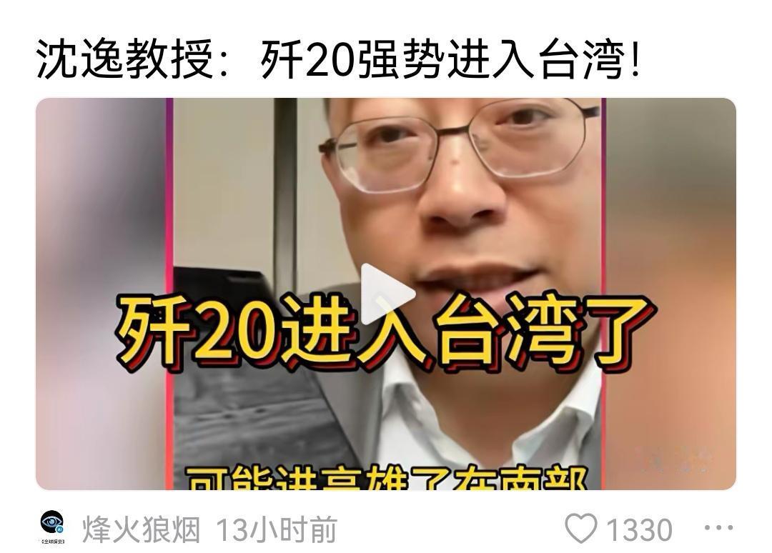沈逸称,歼20已经进入高雄,战争已经打响了吗?