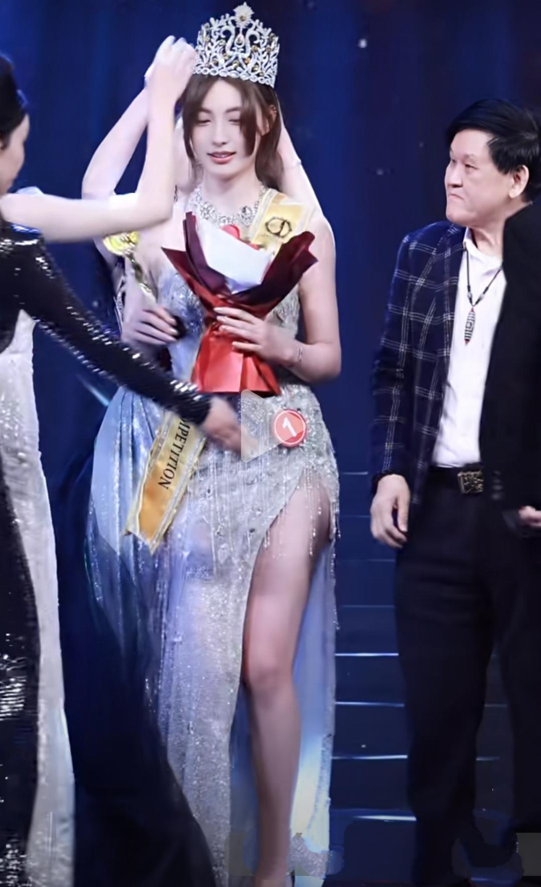 2025中华小姐总决赛小姐冠军王语会,旁边的男士是颁奖嘉宾吗?这男士小蓝色格子西装,一看就是个成功人士,他看冠军小姐的眼神太亮了!