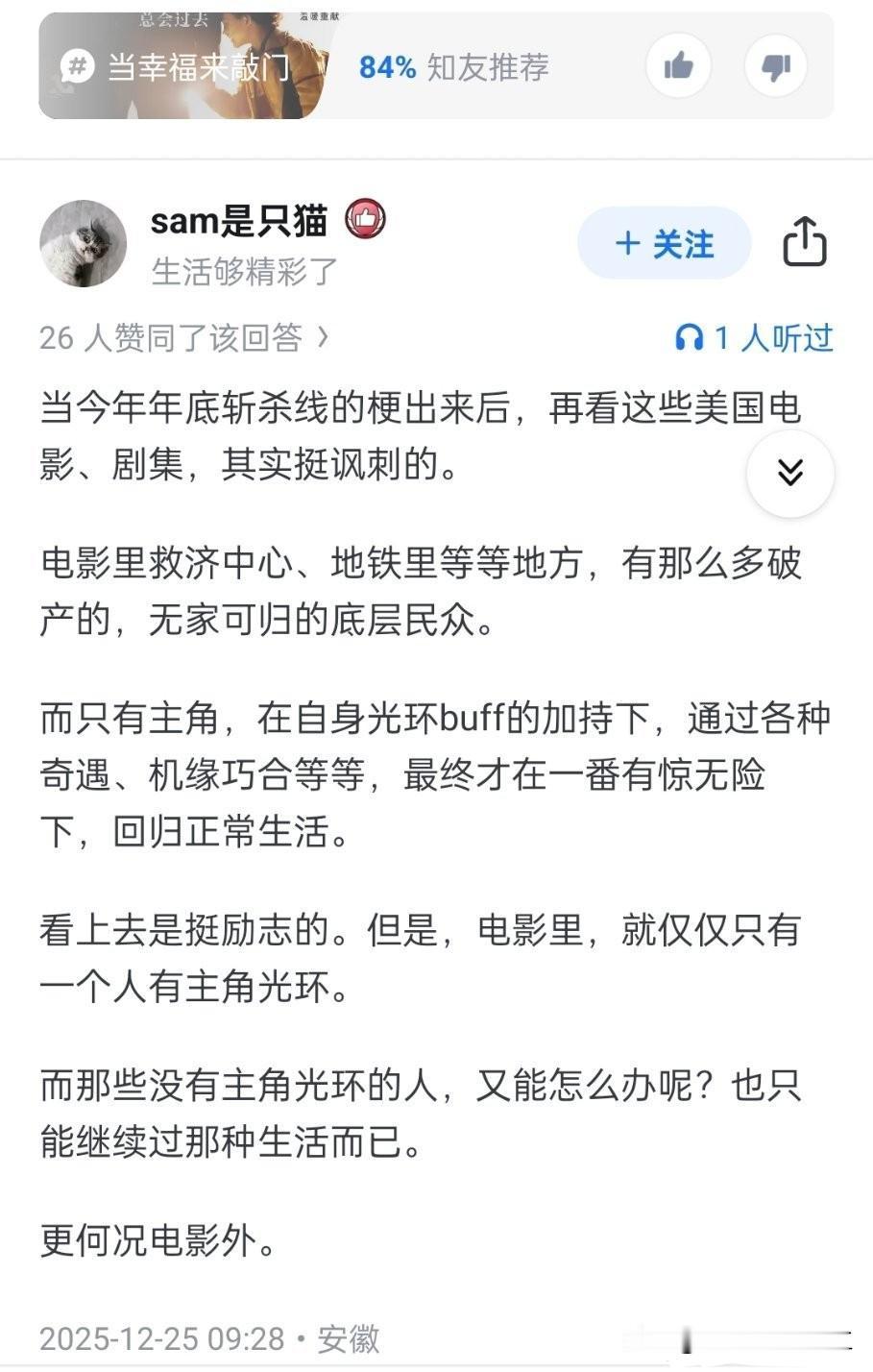 知道美国斩杀线后,再看《当幸福来敲门》 以前觉得是励志片,现在觉得是恐怖片。
