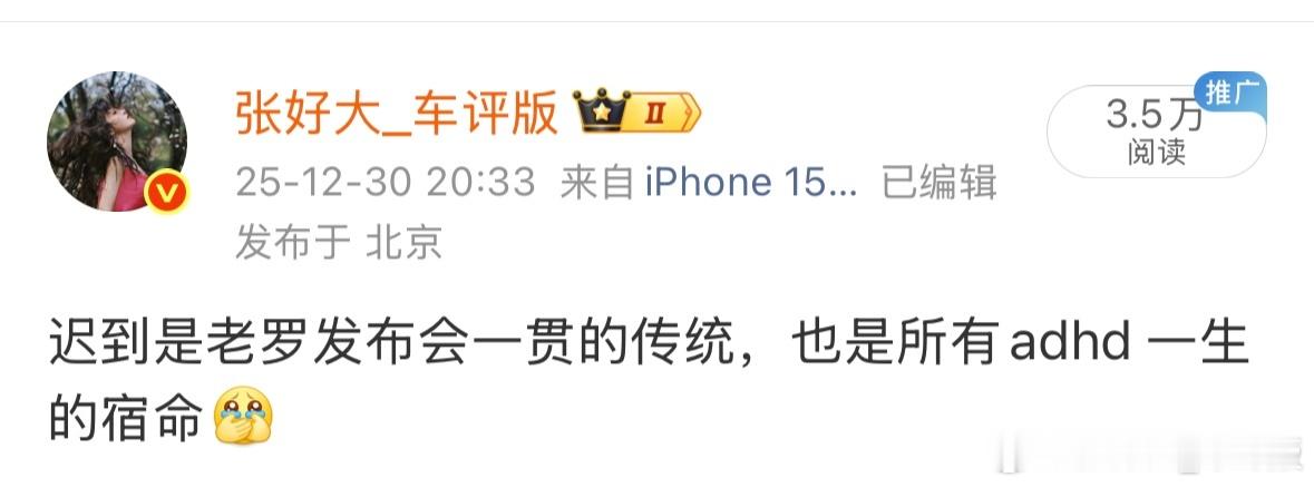 罗永浩为直播迟到致歉老罗能不能雇我当危机公关负责人啊。你看我老早就把理由给你想好了。同为深受adhd困扰的人类,我特别懂老罗的无法启动&总是拖延到最后一刻&指望心流出现是怎么回事。大脑前额叶方面的问题,是光凭意志无法克服的…P.S.专注达最好不要每天都吃。这玩意越吃越抗药…正常来讲重大项目前吃上就好了。但是老罗太红了。平时的大部分工作都是重大项目,这就只会导致他药越吃越多,然后继续恶性循环…