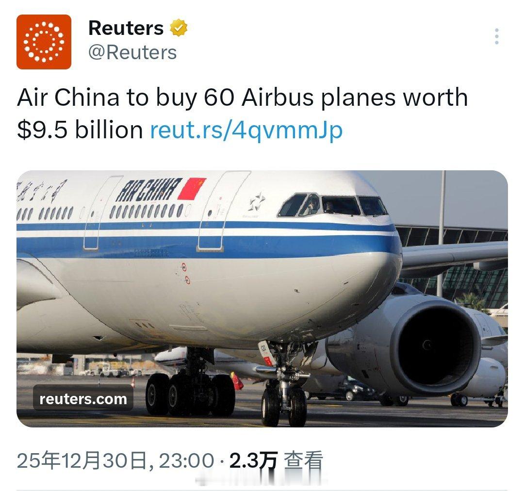 国航订购60架A320neo系列飞机(路透社)中国旗舰航空公司周二表示,其与一家子公司已与空中客车公司签署协议,购买60架A320neo飞机。按目录价格计算,该交易价值约95亿美元。中国国航在向上海证券交易所提交的公告中称,这批飞机将于2028年至2032年分批交付。此次交易紧随本周多家中国航空公司发布的类似公告之后,其中包括春秋航空和吉祥航空,这两家公司也披露了购买空客飞机的计划。海外新鲜事空中客车