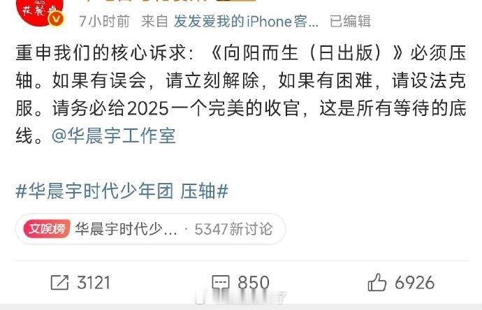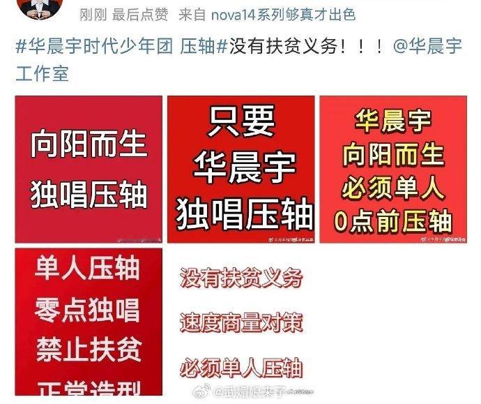 网传湖南卫视跨年晚会华晨宇和时代少年团一起压轴,华晨宇粉丝正在维权,要求单人零点独唱,不扶贫。。。 华晨宇时代少年团 压轴