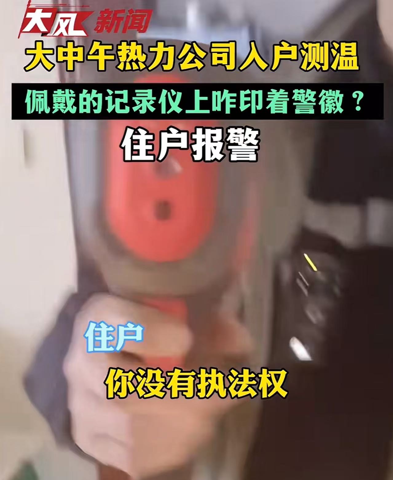 男子硬杠热力公司!山西太原,男子家里温度低于18度,向热力公司投诉!万万没想到,工作人员卡着中午这个点上门检测,还专门挑阳面温度高的房间!男子提出质疑时,发现工作人员佩戴的记录仪上竟然还印有警徽,男子:你们有什么权利带执法仪?