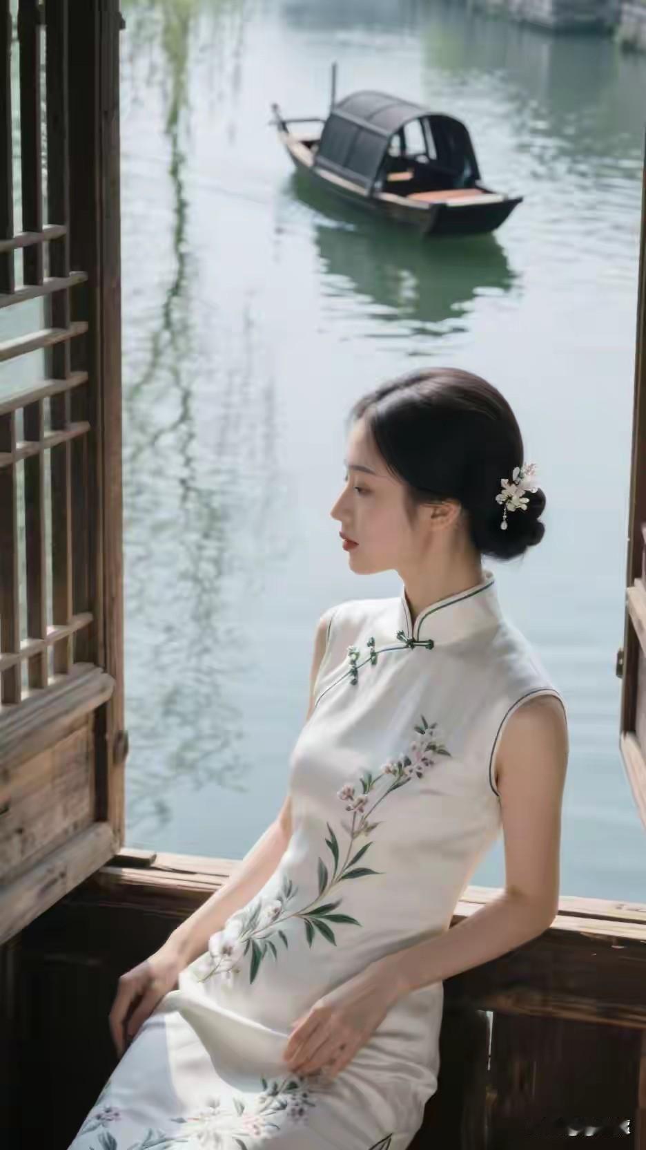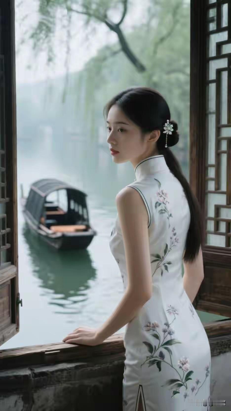 纤腰楚楚随风摆, 眼眸藏星韵自来。 江南烟雨,典雅旗袍 温婉贤淑,藏尽温柔 烟雨朦胧,乌篷船摇 碧波荡漾,窗映柳影 水乡画卷,动人笔触
