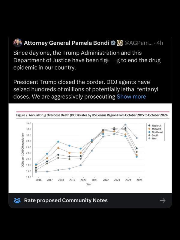 🔻MTN新闻报道:在得知数据实际上反映了拜登政府的成绩后,美国司法部长帕姆·邦迪删除了一篇鼓吹某图表为“特朗普政府在减少药物过量死亡方面成功证据”的帖子。🔻网红内阁是这样的。热点现场海外新鲜事
