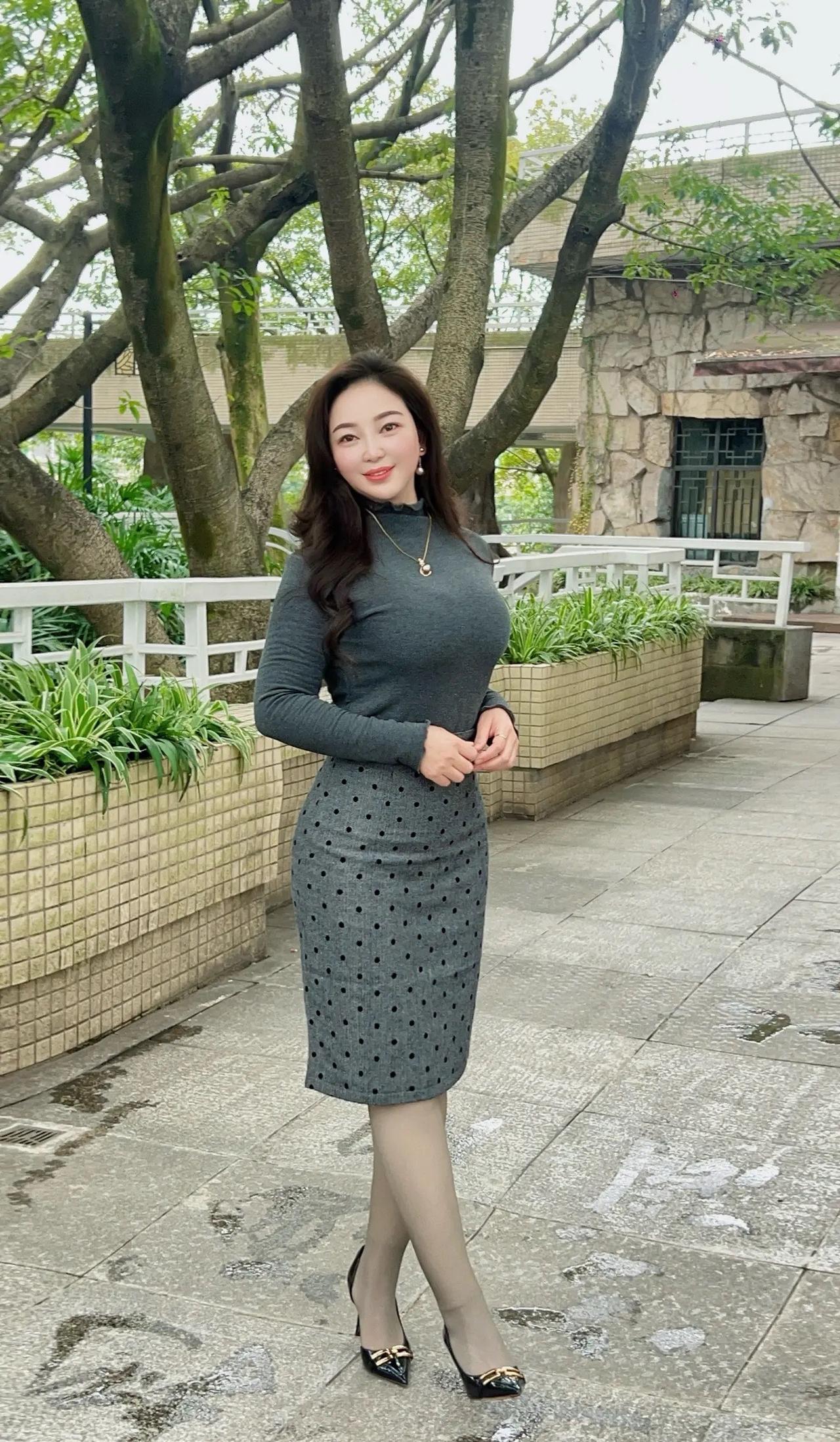 优雅气质穿搭,灰色连衣裙搭配高跟鞋,尽显女性魅力!