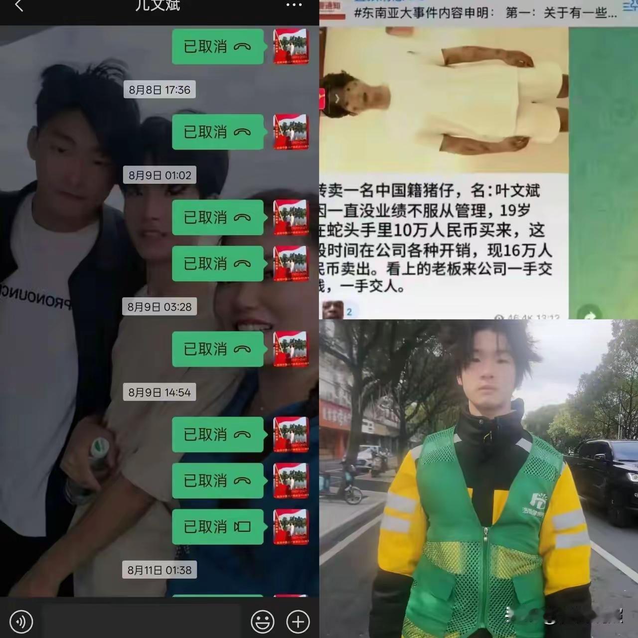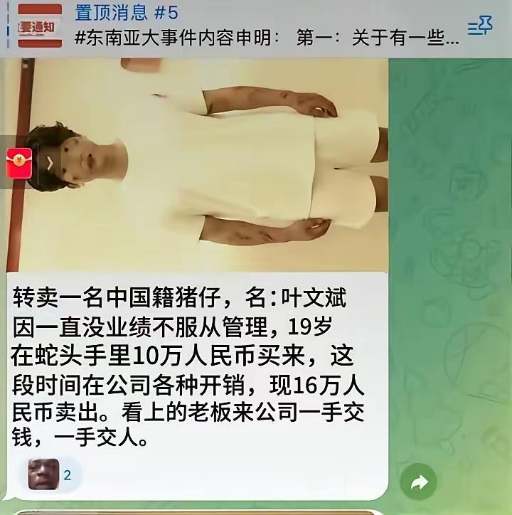 这张照片就是19岁的叶文斌,他已经失联5个月了,他妈妈在一个社交群里,看到有人在明码标价卖自己的儿子。 群里有叶文斌的照片,有明码标价价格,卖16万,原因不听话,没有业绩。 妈妈看见了这个信息,心如刀绞,孤身一人去柬埔寨救儿子。 叶文斌是独生子,三岁父亲就去世了,母亲一个人把他拉扯大。 他是江西省上饶铅山县人,现在是在校大学生。 2005年7月28日,同学邀请到南昌游玩,后来不知道什么原因,临时改变了行程。 叶文斌7月30日还出现在云南,8月7日早晨就失联了。 有网友说,叶文斌就是被熟人坑了 打着高薪工作和出去玩的幌子 把人骗走了。 看来这网友说的是真的。 据警察通过电话查询的,他辗转云南、广西两个地方,最后人就跑到柬埔寨去了。 叶文斌是单亲家庭,他的单亲妈妈费女士,为了找他,去了广西,她看到了儿子和同伴的行李还在酒店,人却已经无影踪。 经过警察的查询,后来得知儿子到了柬埔寨。 再后来,叶妈妈在一个群里,看到了一条消息。 信息说::转卖一名中国籍猪仔,名,叶文斌,19岁,因一直没业绩不服从管理,从蛇头手里10万元人民币买来。这段时间,在公司各种开销现16万人民币卖出,看上的老板来公司一手交钱,一手交人。 除了文字,还有照片。 叶妈妈看见照片是自己的儿子,而且儿子的脸上和胳膊,都有着伤痕。 叶妈妈说:找人打听了,确实有过这条转卖信息,但是没过几天就被下架了,这意味着儿子很可能已经被到手转卖了。 这妈妈的,真是为母则刚。 为了儿子,她现在已经一个人到了柬埔寨,向中国驻寨大使馆反映这个事情。 [祈祷][祈祷]希望有大使馆的帮助,能够早日找到叶文斌。 建议我们大家都要小心翼翼,特别要告诉家里的孩子。 如果很久没有联系的朋友,突然联系你,然后邀请一起出去玩,这基本都是套路。 所以,小心谨慎一些不吃亏,凡事多想想为什么! 前几天闺蜜邀请我去云南大理玩,我愣是没有答应,她出路费我都通通拒绝了。 不怕一万,就怕万一,万一闺蜜让人骗了呢?