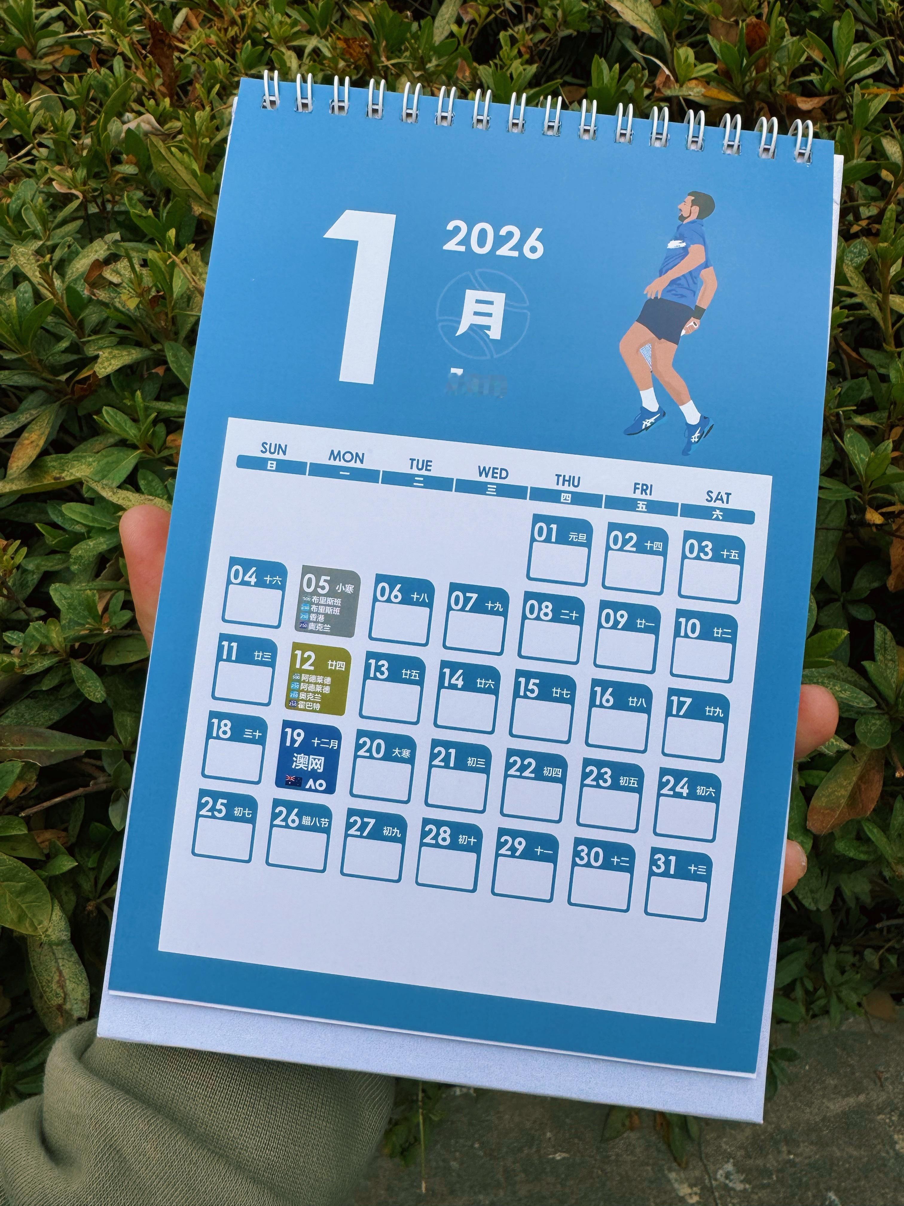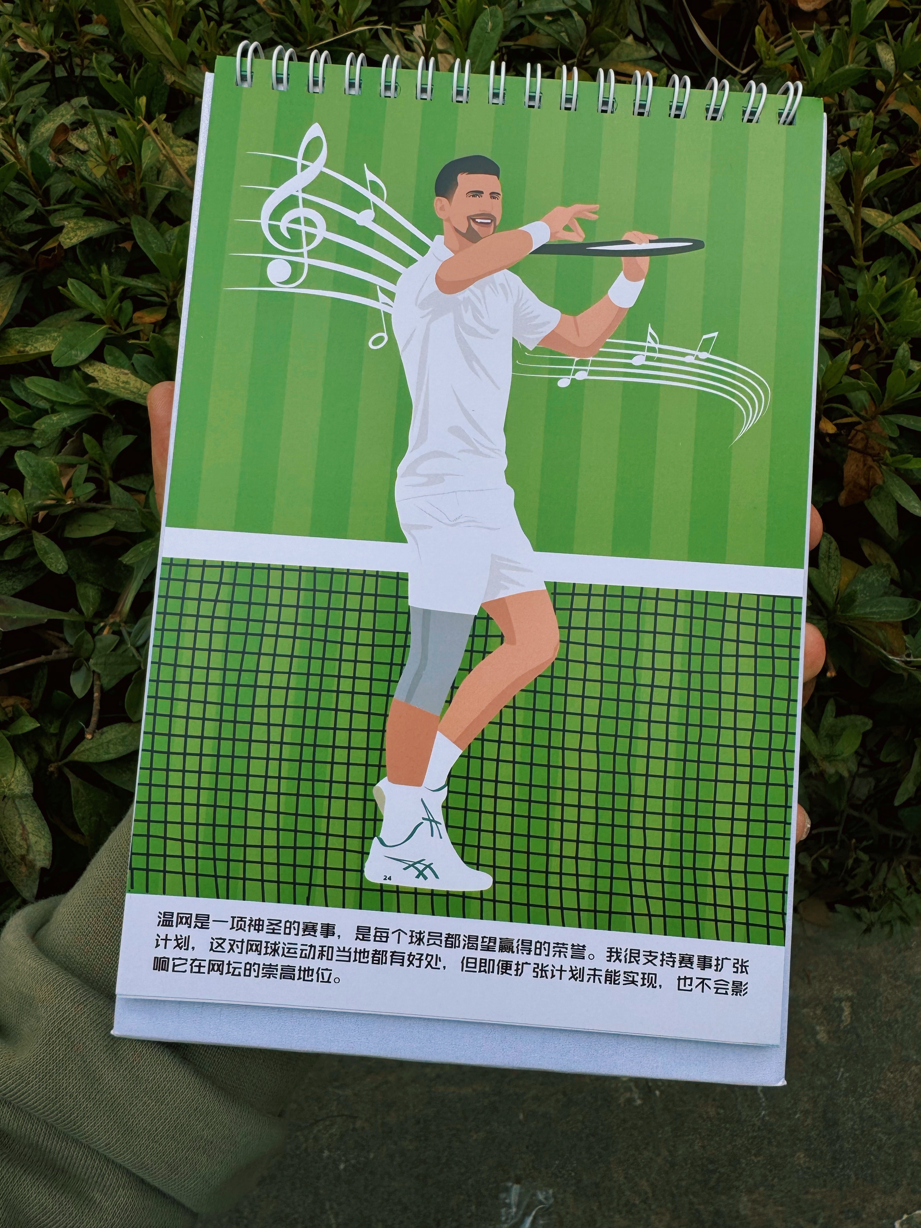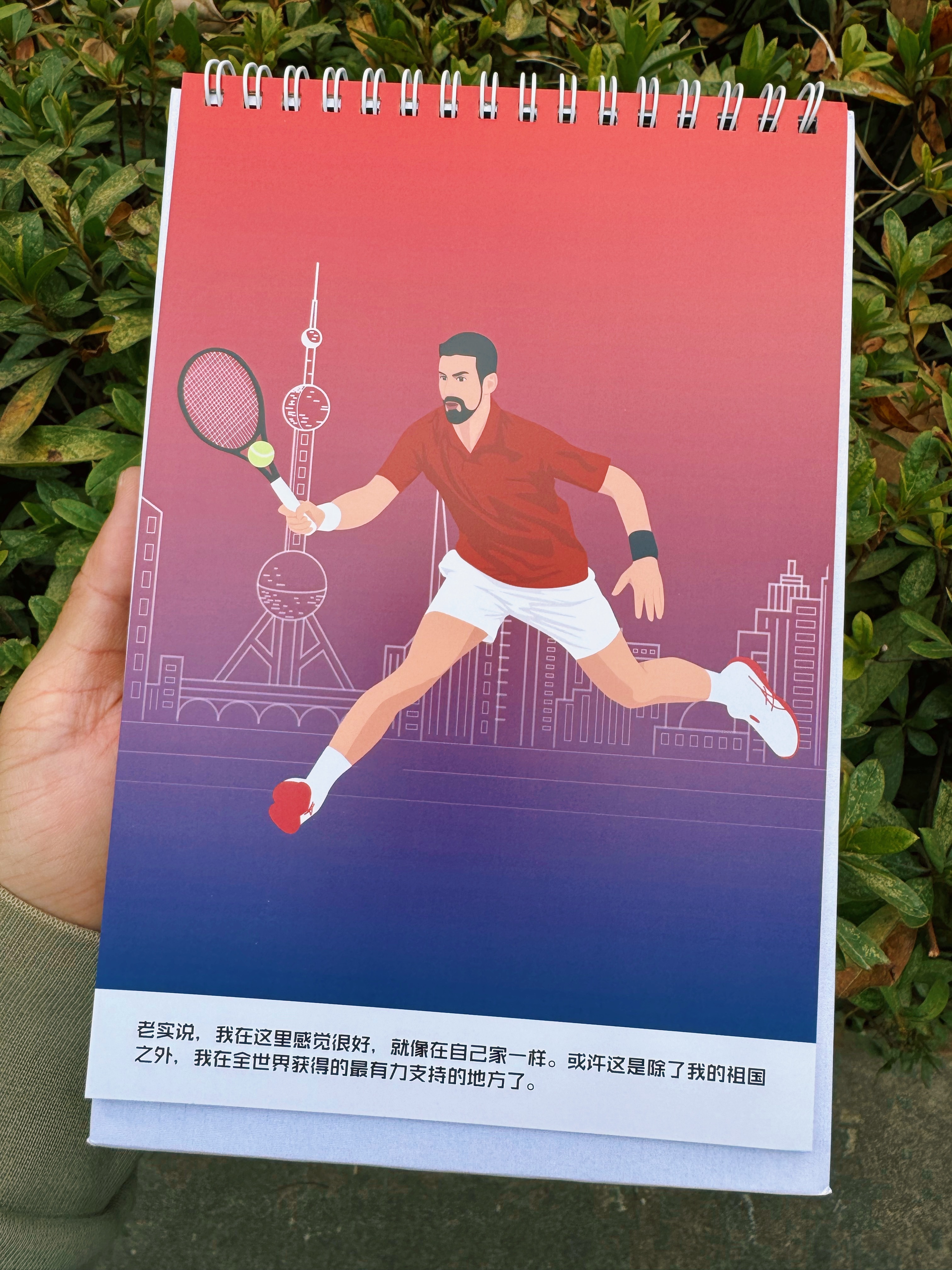 感谢,德约科维奇插画款台历,设计很棒👍体育大赏网球talking大会跨年夜网球