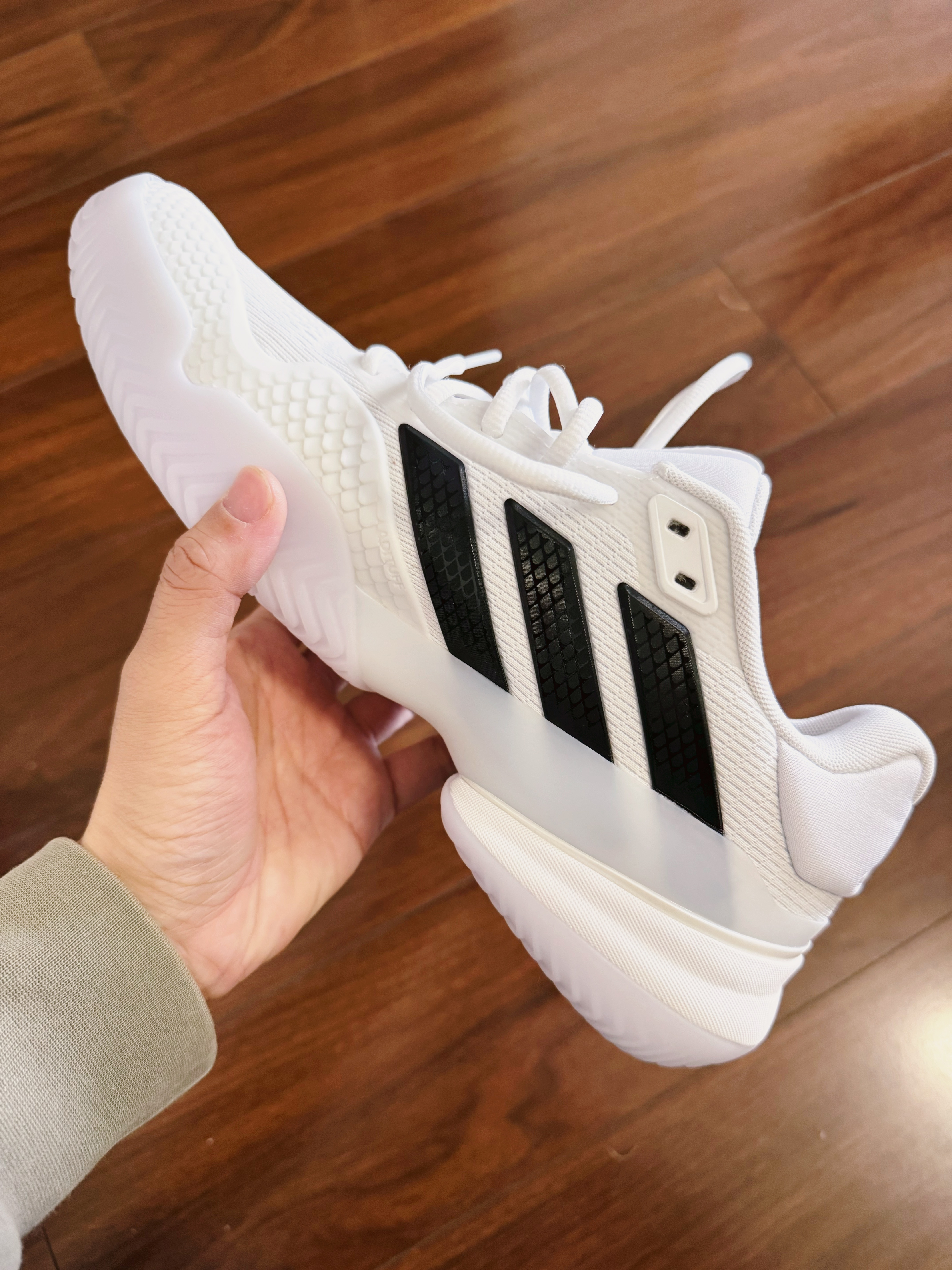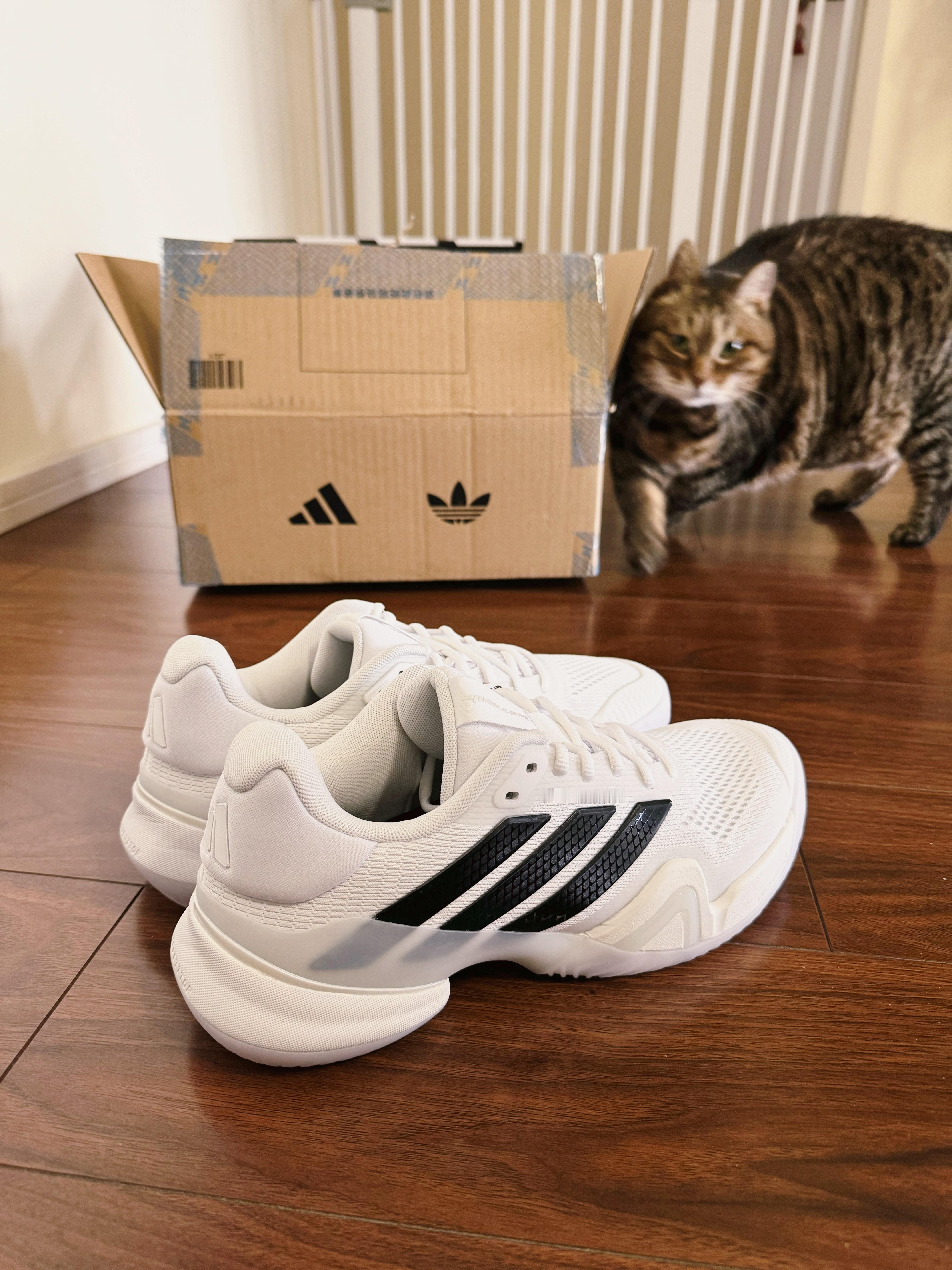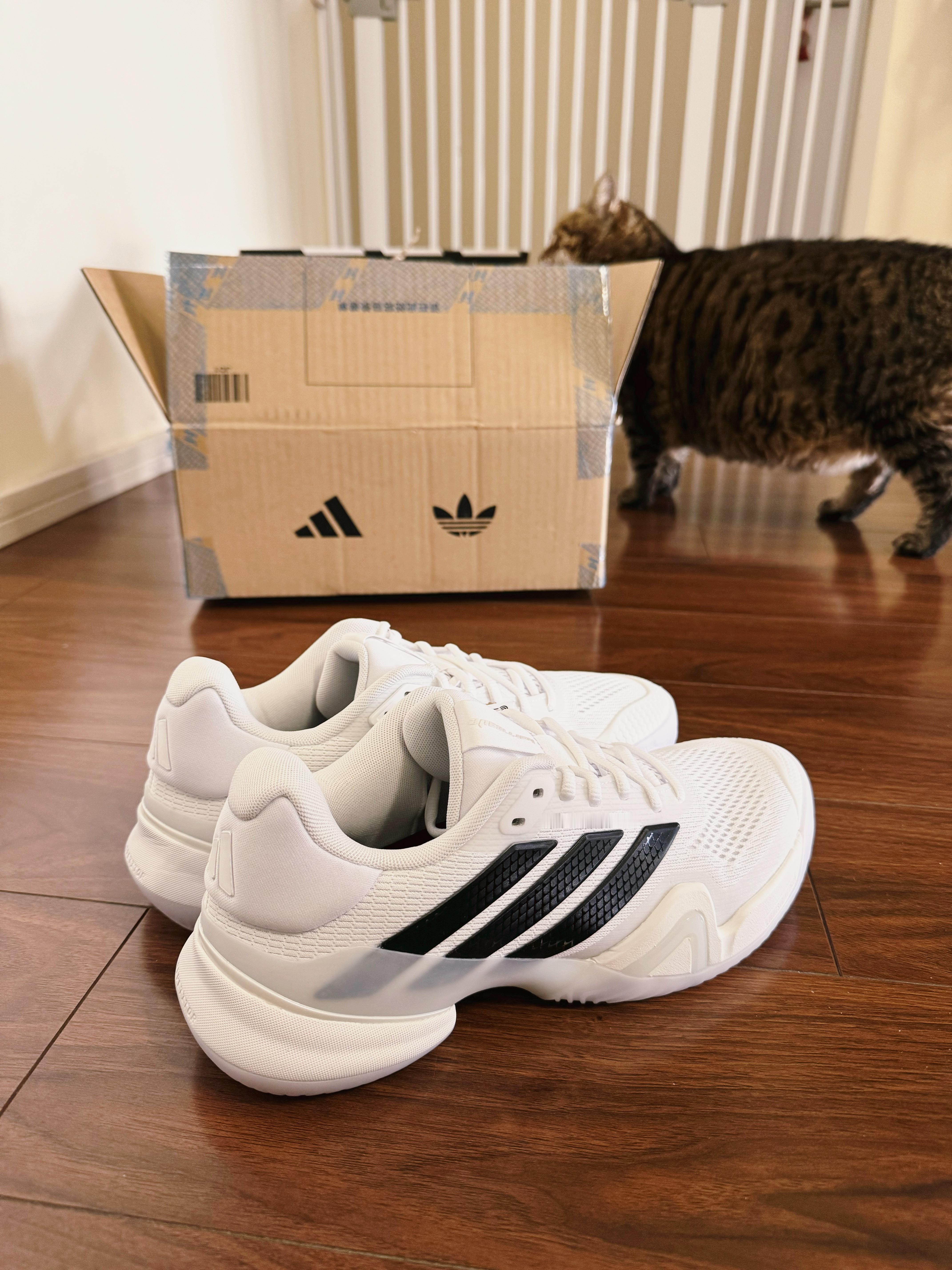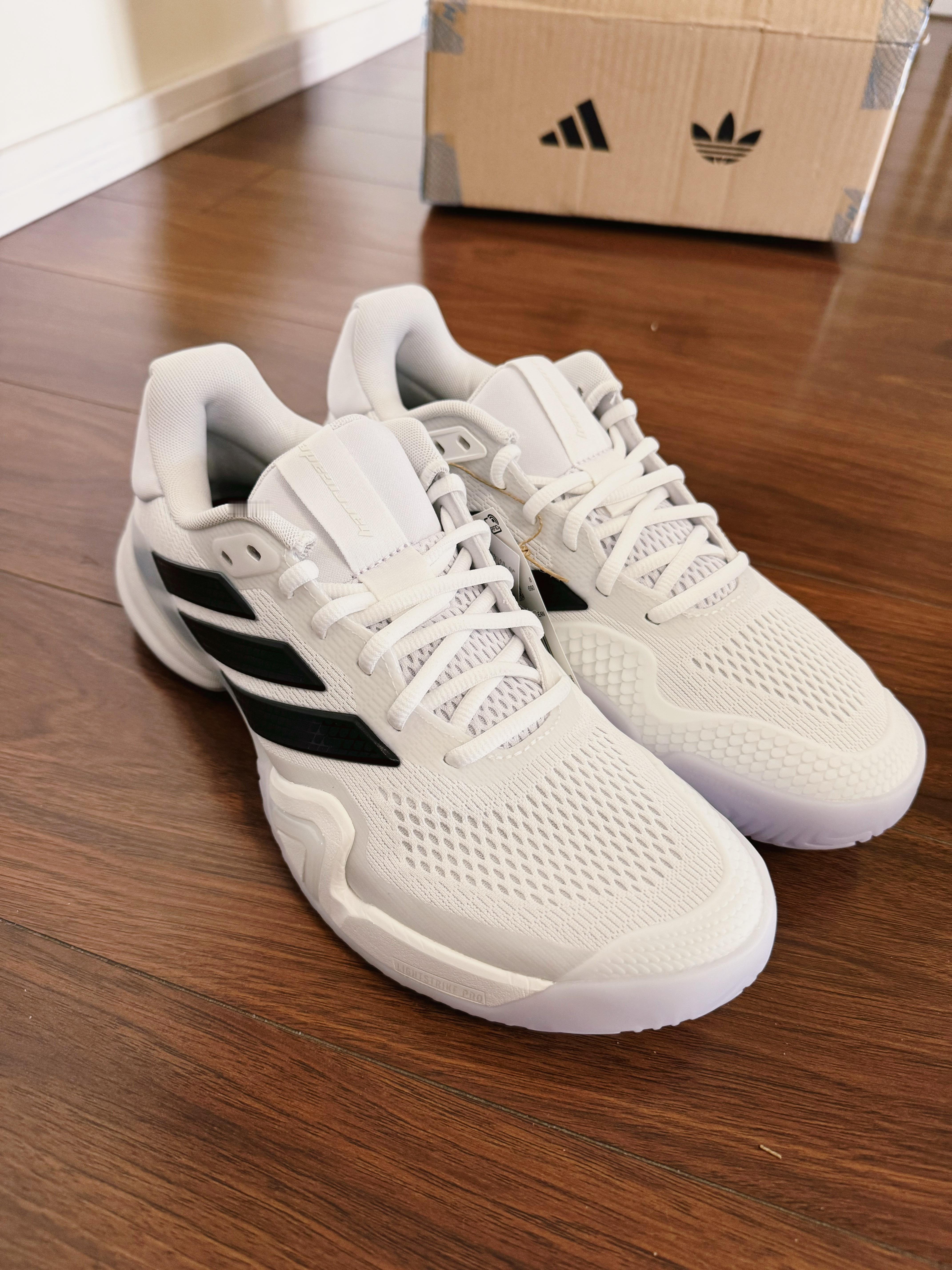 跨年夜的快乐是新球鞋给的🎾出差刚回家就有快递可以拆!阿迪2026新款Barricade 14也太懂我了~经典黑白配色自带高级感,随便搭运动战袍都利落又吸睛,颜值党狂喜😁最惊喜的是脚感直接拉满!跑鞋同款LIGHTTRAXION大底首次用到网球鞋上,抓地稳得不像话,急停变向都不慌~前掌的LIGHTSTRIKE PRO泡棉软弹又有劲儿,起步回弹超利落,感觉跨年夜赛场主动权可以直接拿捏住了~体育大赏跨年夜网球talking大会网球