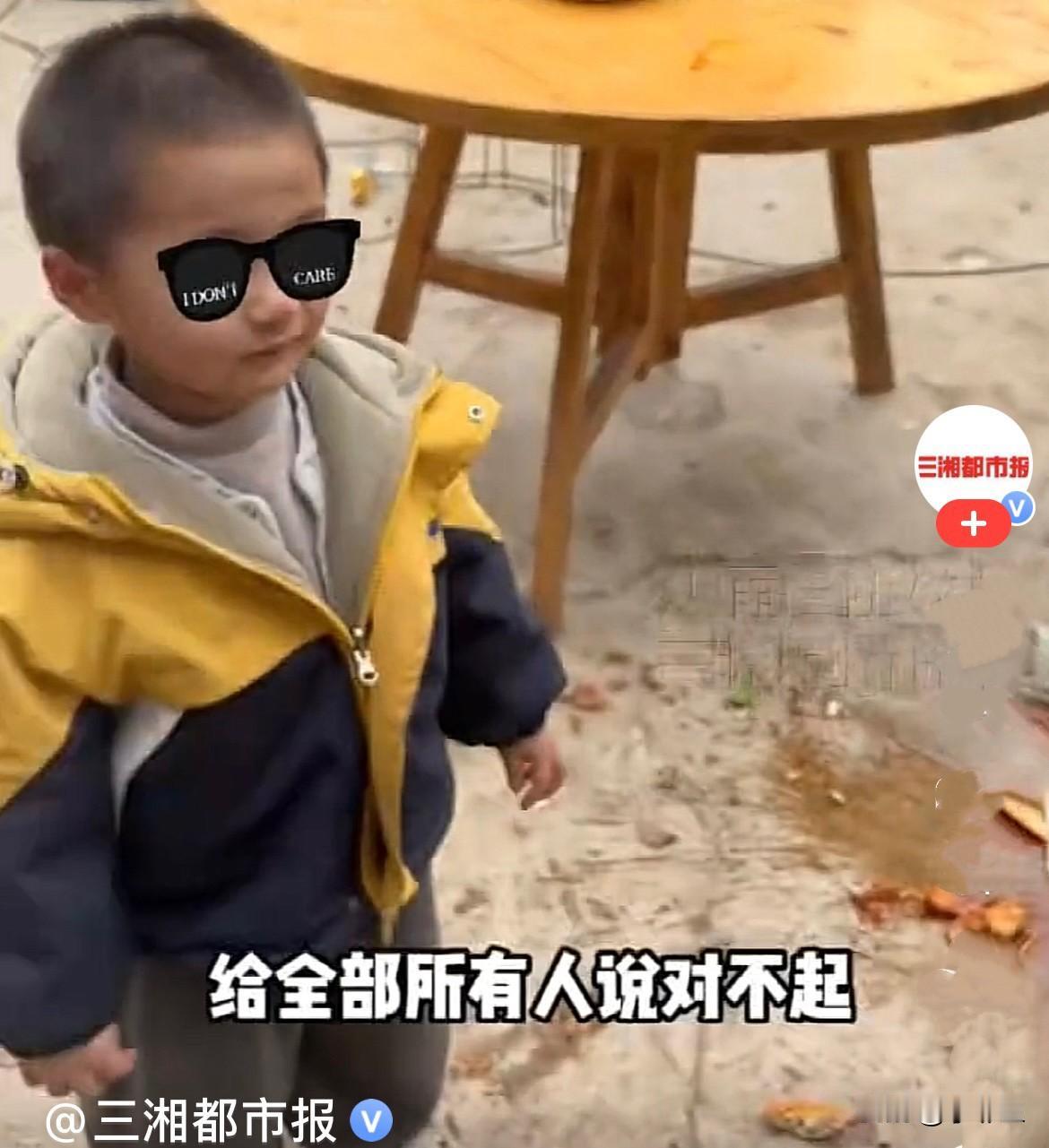 近日,四川雅安一对夫妻带着四、五岁的儿子去农村吃席,人很多好热闹,席间孩子不小心把还没端上桌的菜碰翻在地,孩子第一时间跑到妈妈面前告诉妈妈“我只是闻了一下味道”,看来妈妈平时对他也很严厉吧…… 妈妈觉得大家都吃不上这道菜了,很内疚也挂不住脸了,让孩子对每个人道歉,孩子真的要去对每个人道歉了…… 最后爸爸让孩子站在地上大声给大家统一道歉:“爷爷奶奶叔叔阿姨,我不是故意的,是我的错,对不起大家”…… 孩子好懂事,真的好棒,勇于承担责任,还这么真诚道歉,面对着这么多人的批评,他没有哭闹,他还把地上摔坏的东西扔到了垃圾桶…… 父母教育的很好啊,做得没错啊,让小孩知道自己做错了事,不是所有事都能有父母来兜底的,有些错误要自己去承受…… 嚷打翻女孩水杯的那对母女看看,这就是教育,这就是家教…… 这一家三口都超过了好多人,为这三口点赞[赞]