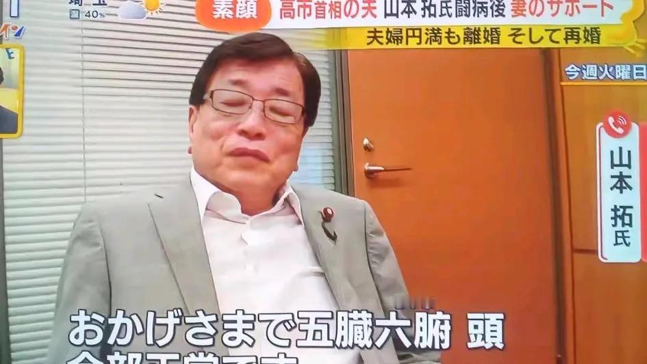 这个是高市早苗的丈夫,坐轮椅。高市早苗虽然人不咋滴,但是她对丈夫不离不弃。两个人2004年结婚,高市早苗结婚的时候都四十多岁了,属于晚婚晚育。他的丈夫山本拓因因脑梗多次复发,但高市早苗没有和他离婚。