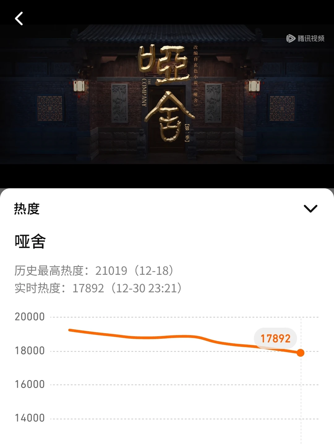 哑舍竟然这样悄无声息的播完了,最高热度才21000。。。