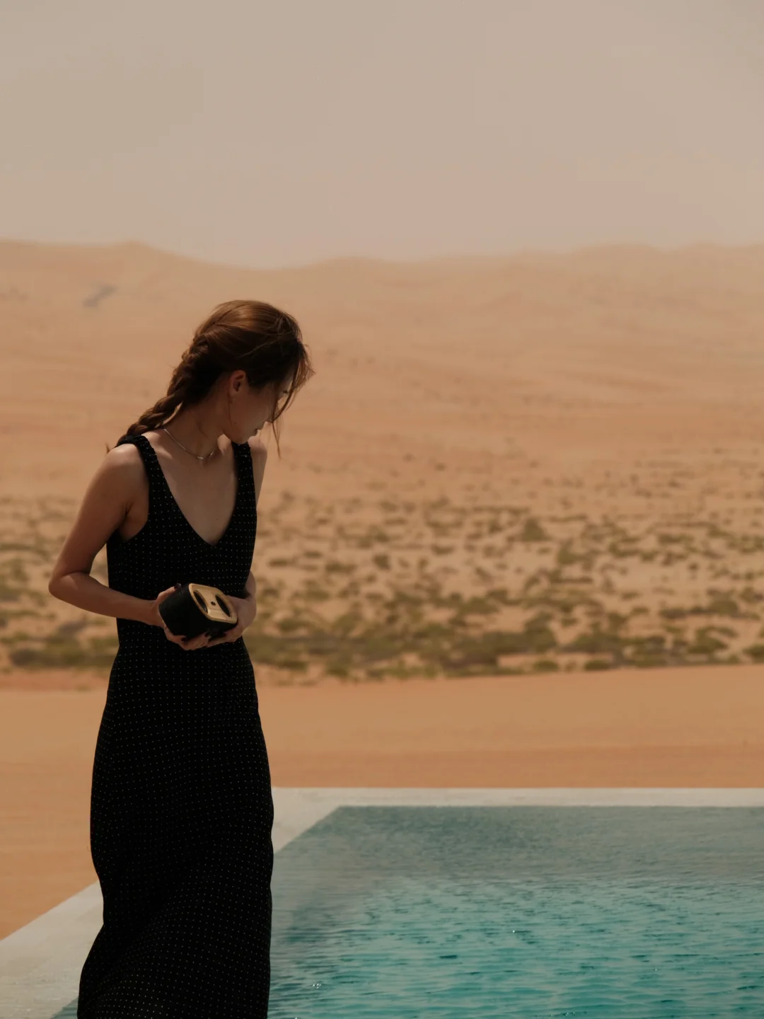 老婆和我分享几个月前和闺蜜去的沙漠酒店 静谧、避世,如海市蜃楼一般🏜️ 拥有异世界的美 如果想暂时逃离地球,这里或许是答案之一 它位于阿布扎比最大的沙漠,里瓦沙漠深处 电影《沙丘》中的浩瀚沙海就是在这里拍摄 夏天去虽然炎热,但淡季人少性价比极高 晚上游完泳,🍸喝完酒 在酒店门口细软温热的沙漠里躺着等待沙虫 据说能有效祛湿[偷笑R]