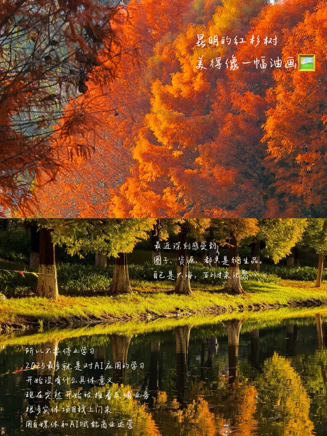 最近深刻感受到:圈子、资源都是衍生品,自己是大海,百川才来汇聚。所以不要停止学习,2025我深耕AI应用,开始没什么具体意义,如今已能反哺业务,靠自媒体+AI赋能实体,接到不少项目。
