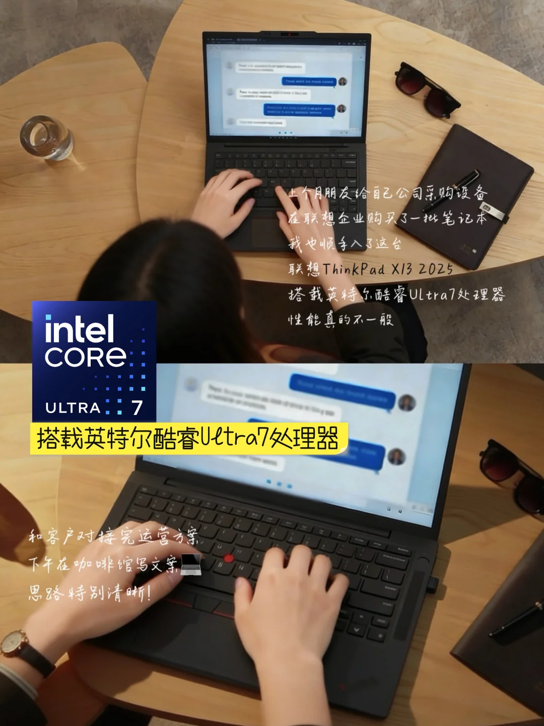 打工人最怕电脑卡成PPT!像我剪视频、跑AI工具是日常,联想ThinkPad X13 AI 2025搭载英特尔酷睿Ultra 7 处理器“酷睿Ultra 强大的 不止AI ”,采用性能核、能效核、低功耗能效核的混合架构,自带 48TOPS 的本地 NPU 算力,可以不用依赖云端,多任务切换丝滑到飞起——开着会议软件、剪视频、跑文档,居然不!卡!顿! 效率直接翻倍~
