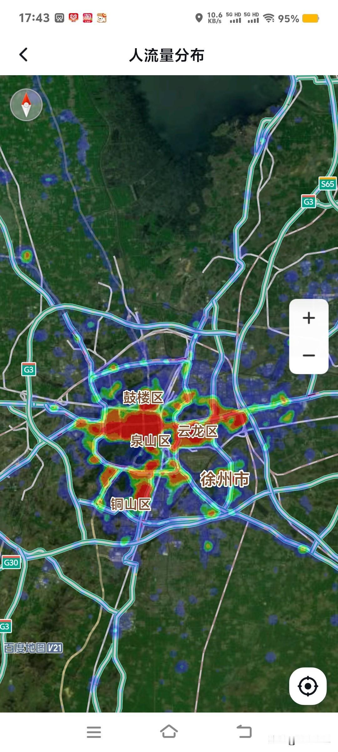 跨年夜,同比例热力图,临沂城区比徐州还大。人口难道临沂比徐州还多么?
