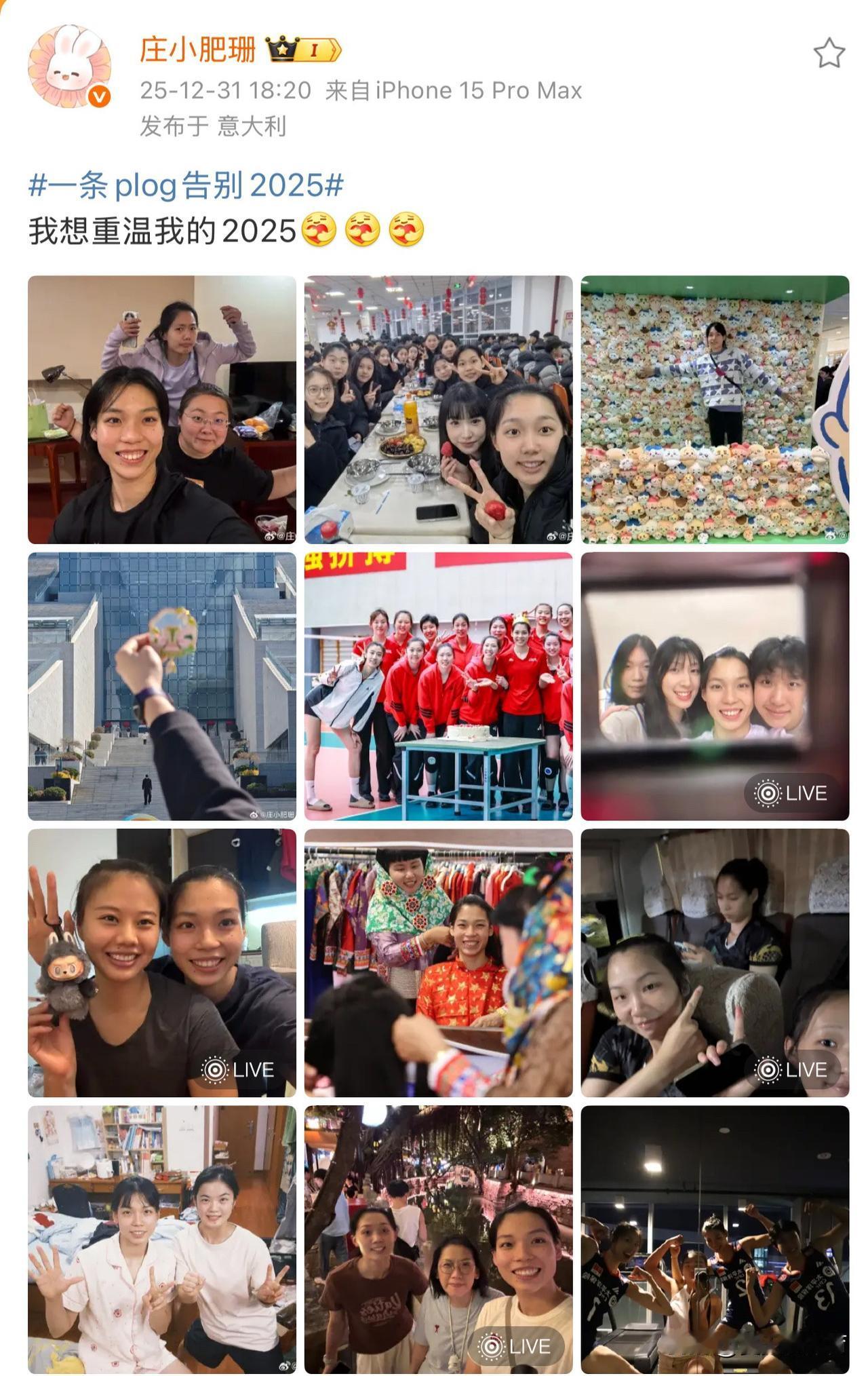庄宇珊的2025年真的是收获满满的一年啊!国家队主打的第一年,跟吴梦洁一起坐稳了主力,在国家队跟队友一起度过了自己22岁生日,全运会跟福建女排队友拿到了铜牌🥉然后去了高水平联赛意大利打球,虽然俱乐部排名靠后,但是成了队伍的顶梁柱,海追到了自己的偶像加比!愿2026年,平安健康涨球!