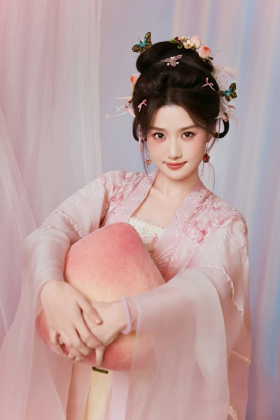 卢昱晓这身妆造也太水嫩了吧,和水蜜桃🍑搭配的太好了!就是妆造有点太浓了,一眼没认出来央视官宣卢昱晓