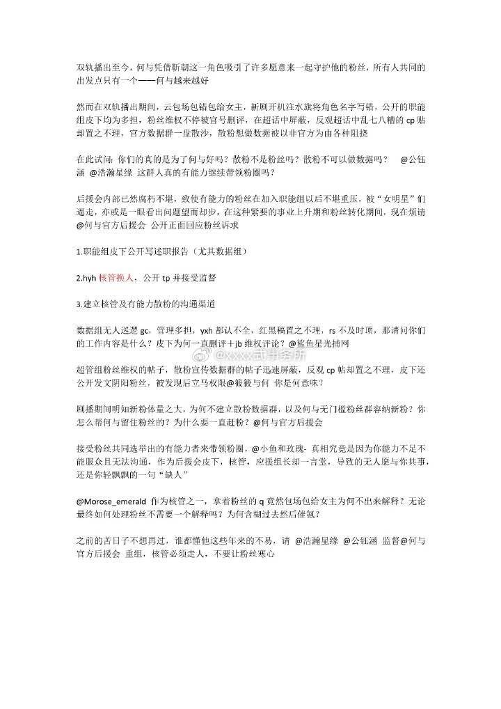 何与 粉丝要求后援会回应散粉诉求 这些低级错误确实有点离谱